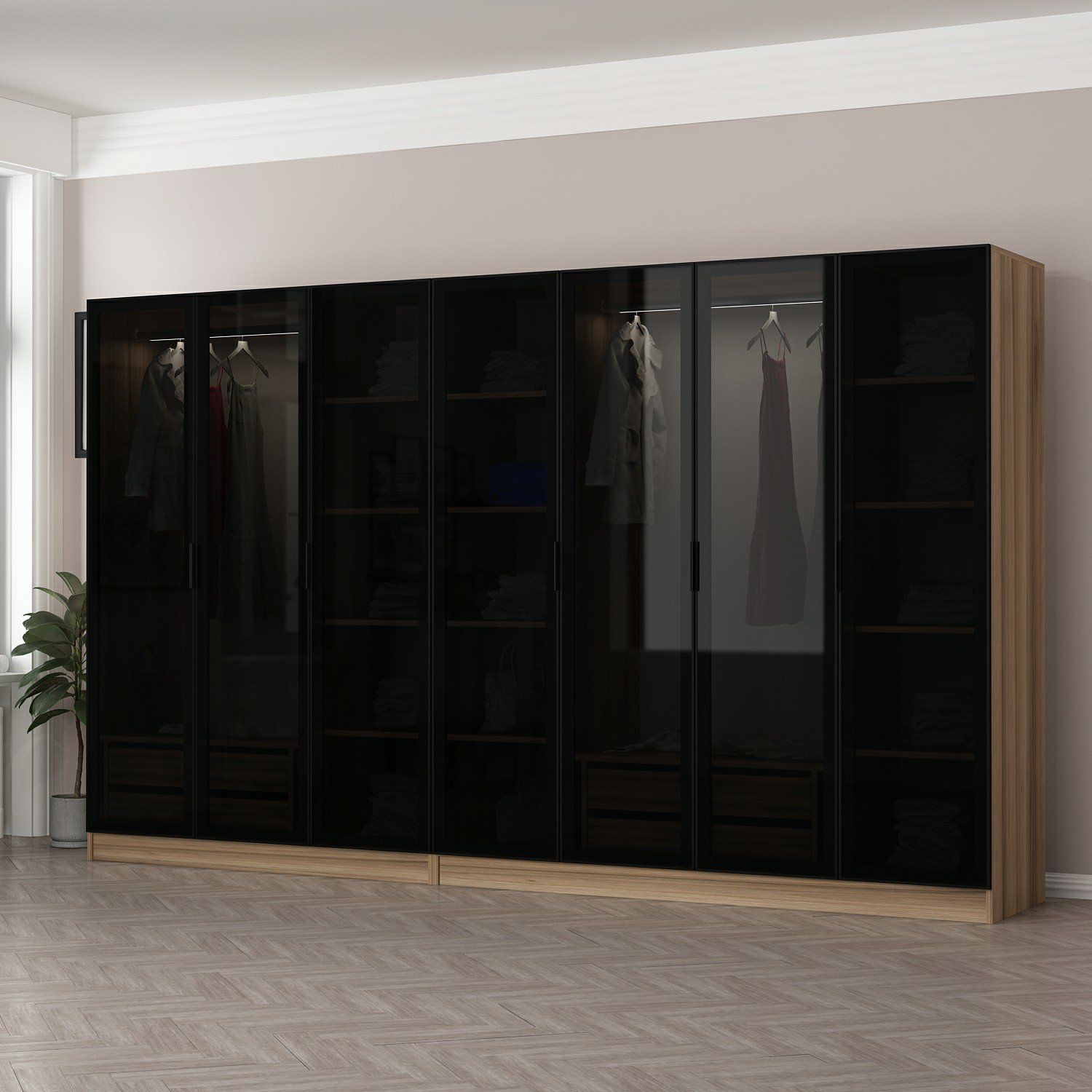 Minar Kale 7 Füme Cam Kapaklı 4Ç Dolap Dore Füme Cam