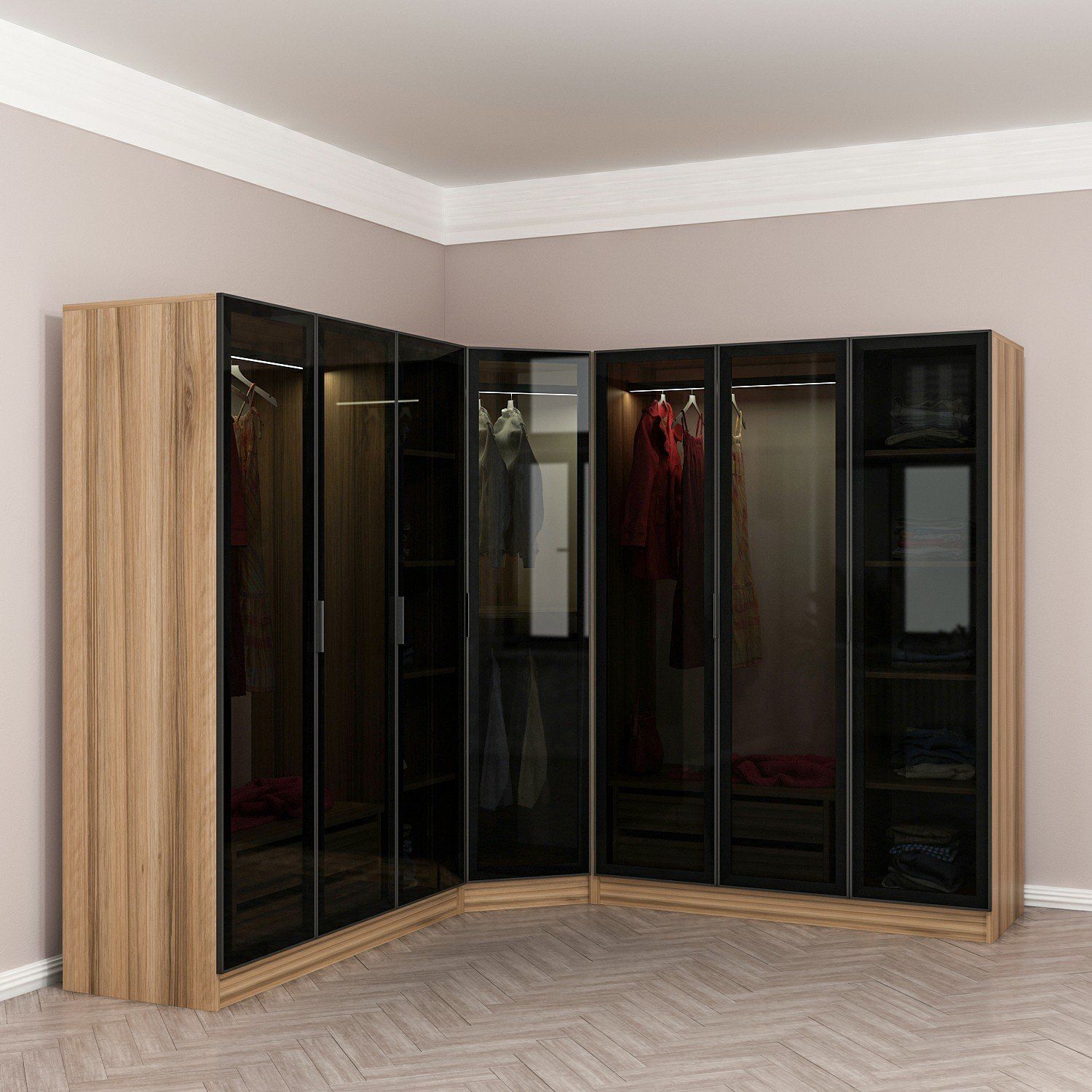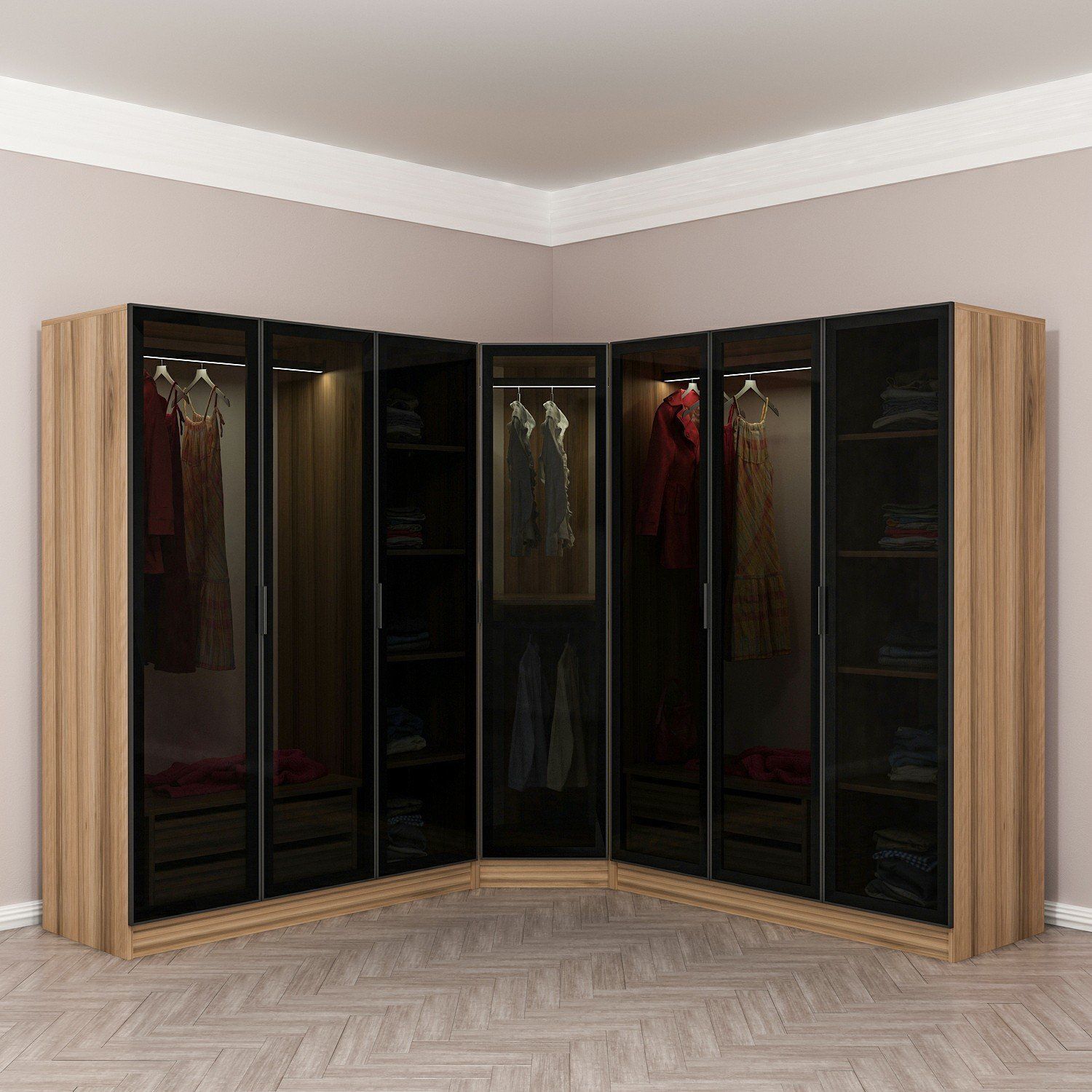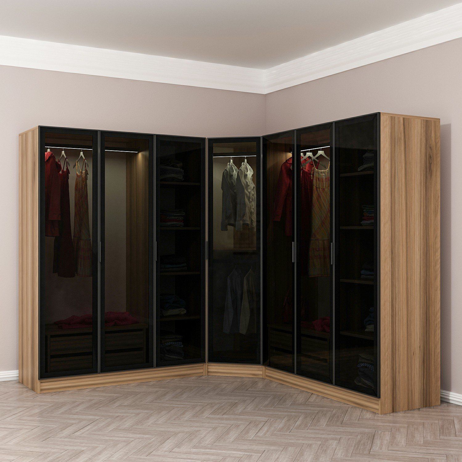 Minar Kale 7 Füme Cam Kapaklı 4Ç Köşe Dolap Dore Füme Cam
