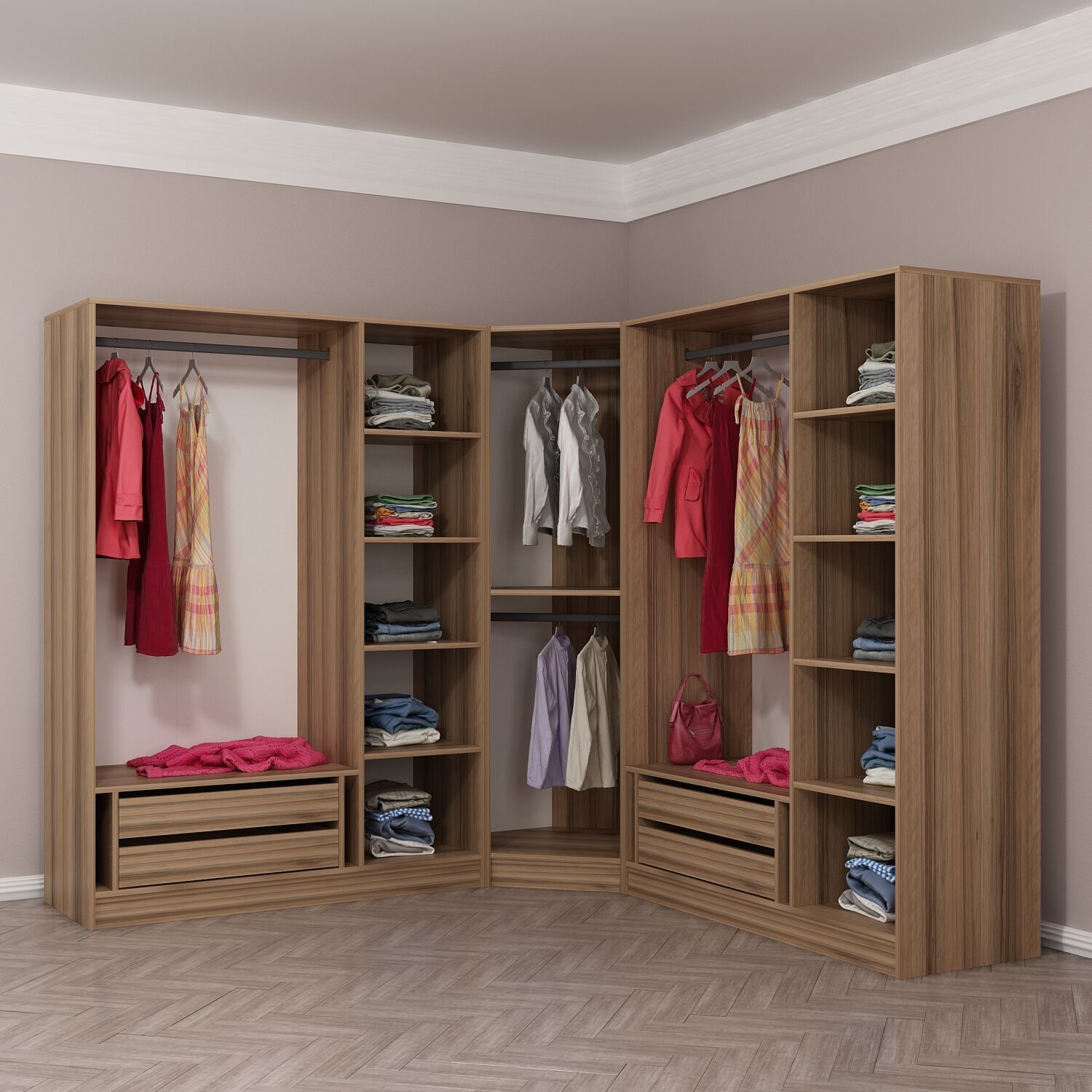 Kale 7 Füme Cam Kapaklı 4Ç Köşe Dolap Dore Füme Cam