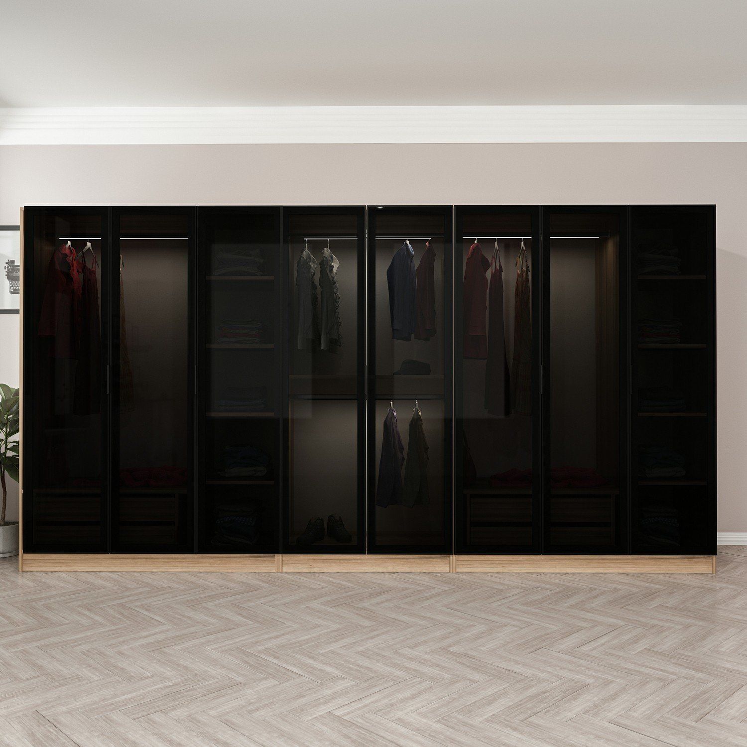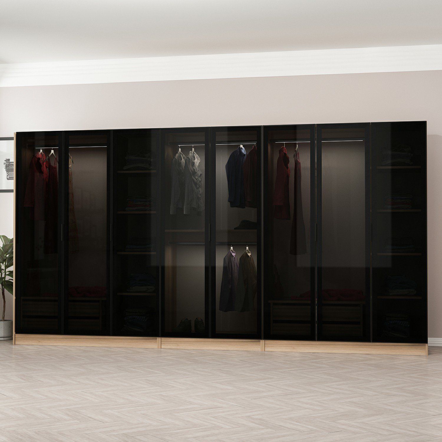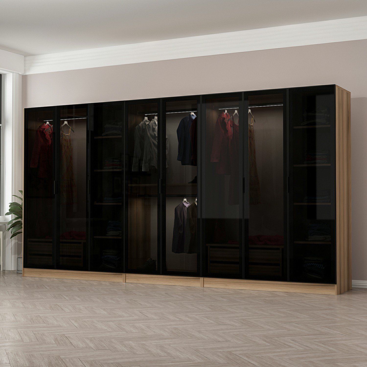 Minar Kale 8 Füme Cam Kapaklı 4Ç Dolap Dore Füme Cam