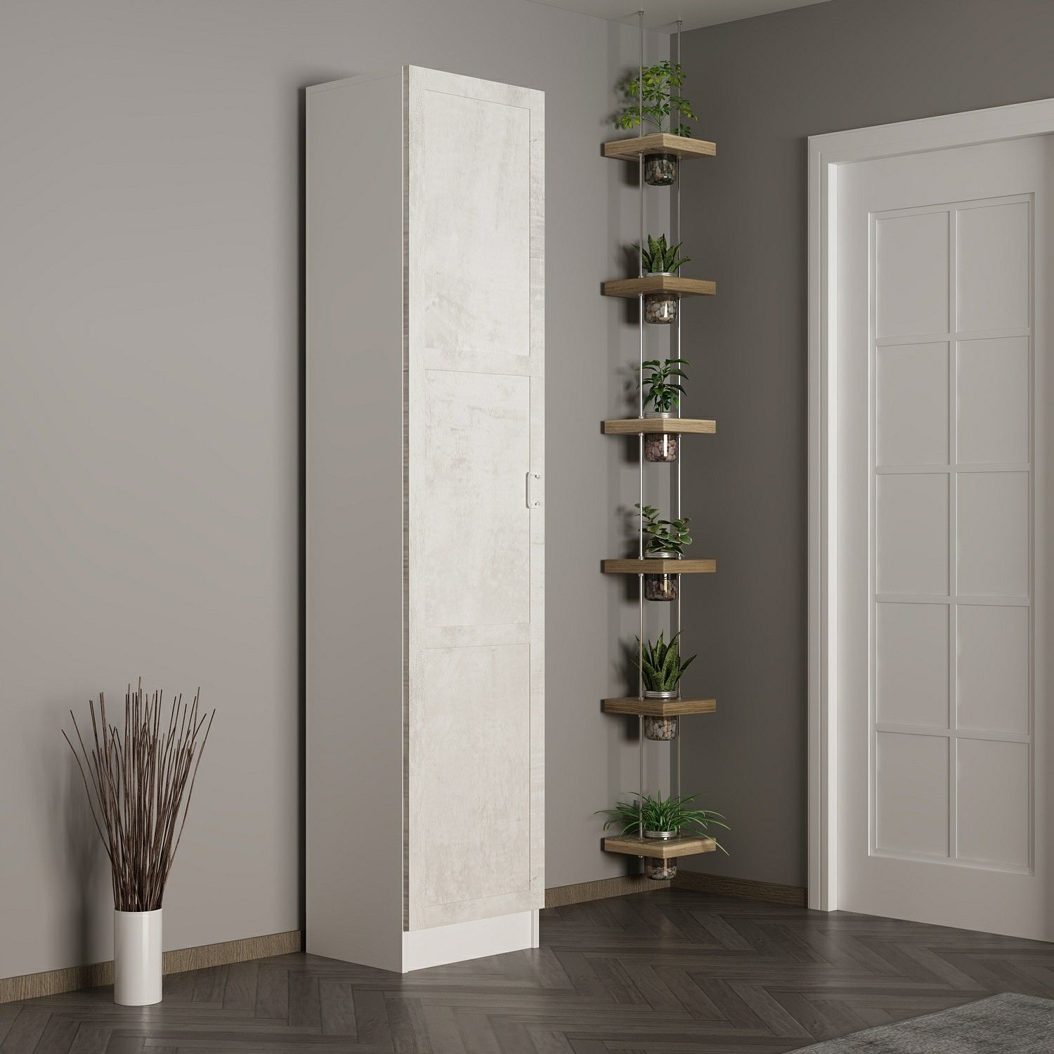 Minar Kale 210 Cm 1 Kapaklı 1B Raf Portmanto Beyaz Eskitme Beyaz