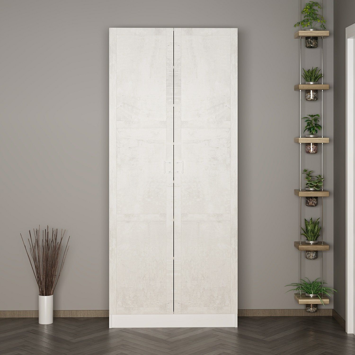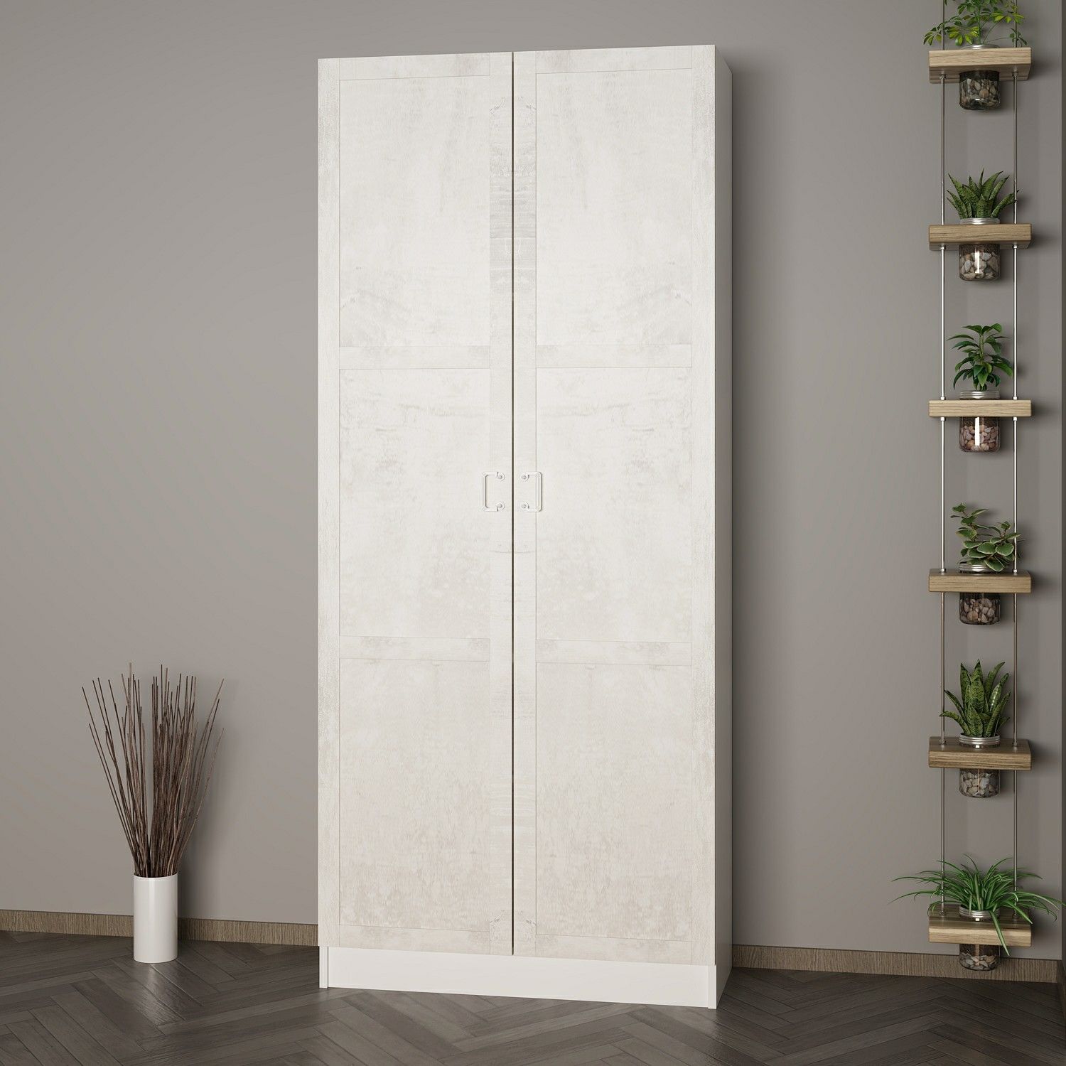 Minar Kale 210 Cm 2 Kapaklı 2B Raf Portmanto Beyaz Eskitme Beyaz