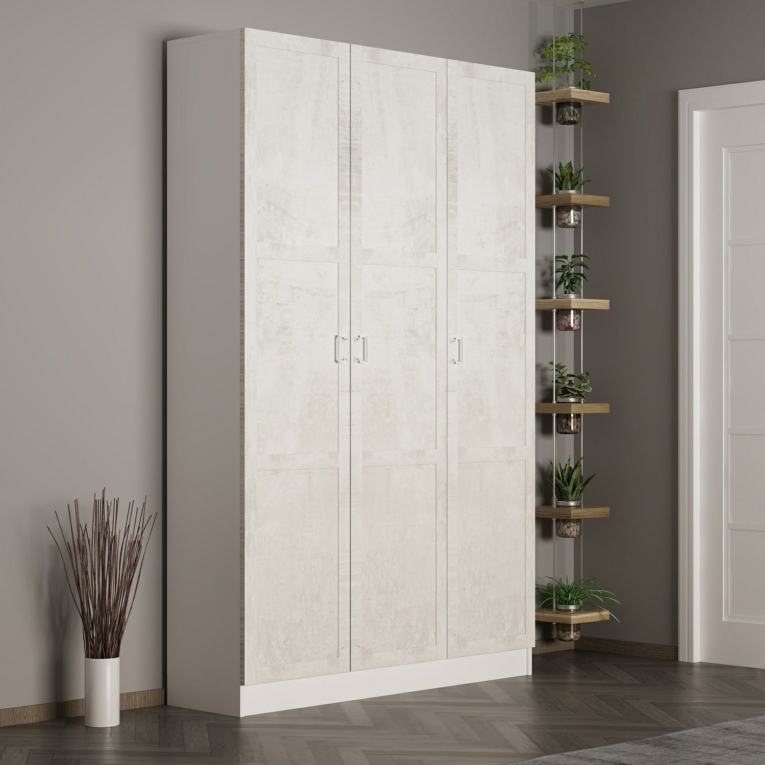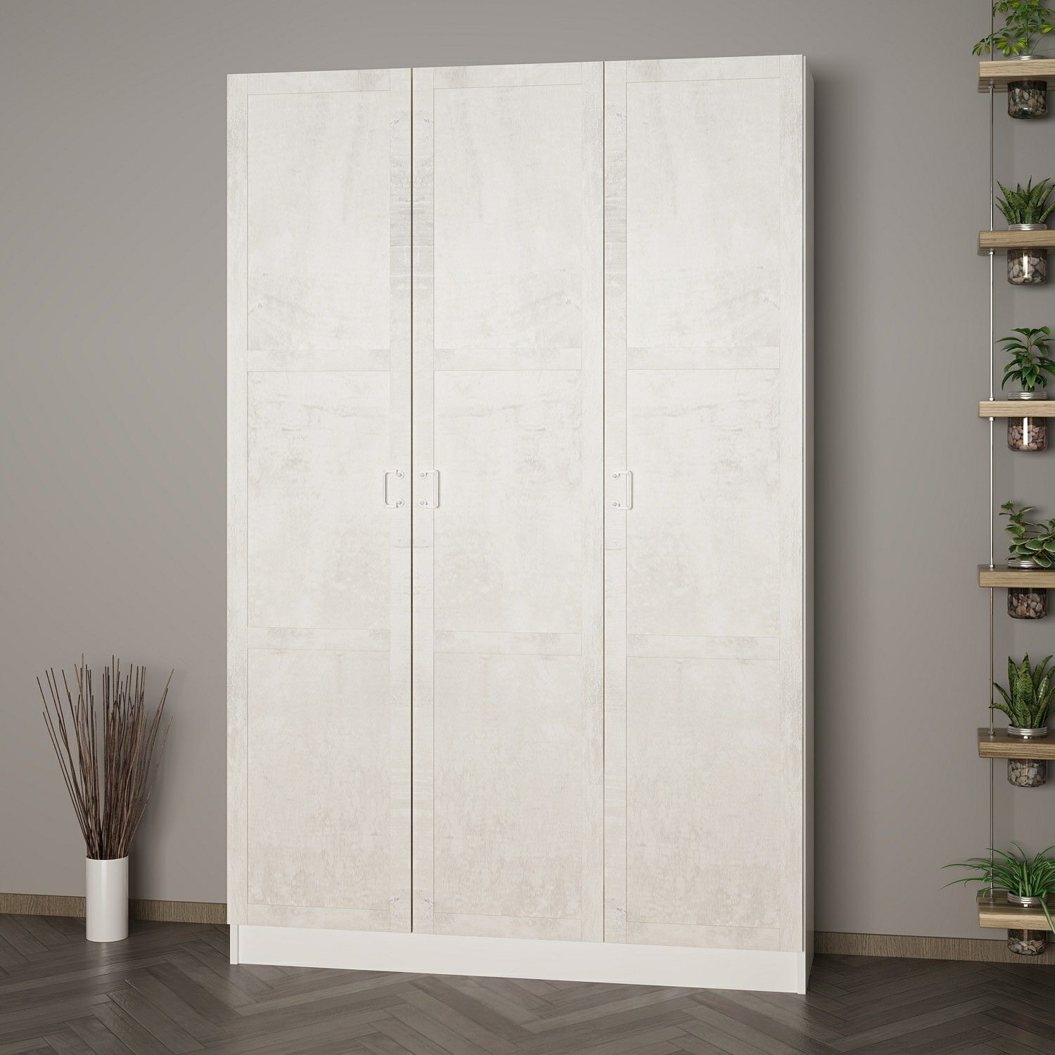 Minar Kale 210 Cm 3 Kapaklı 1B Raf Portmanto Beyaz Eskitme Beyaz