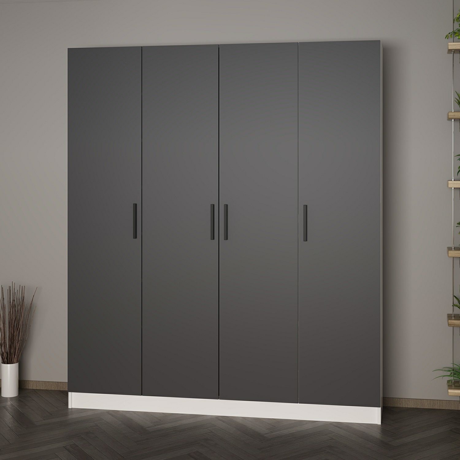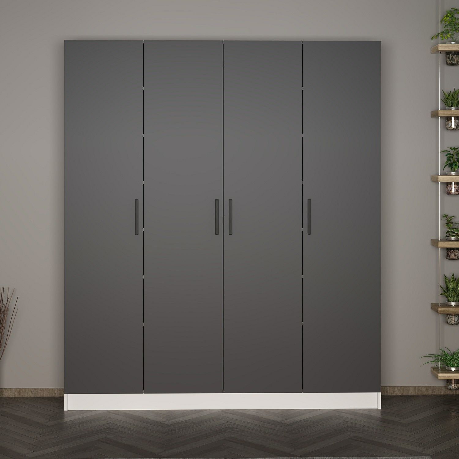 Minar Kale 210 Cm 4 Kapaklı 2B Raf Portmanto Beyaz Antrasit