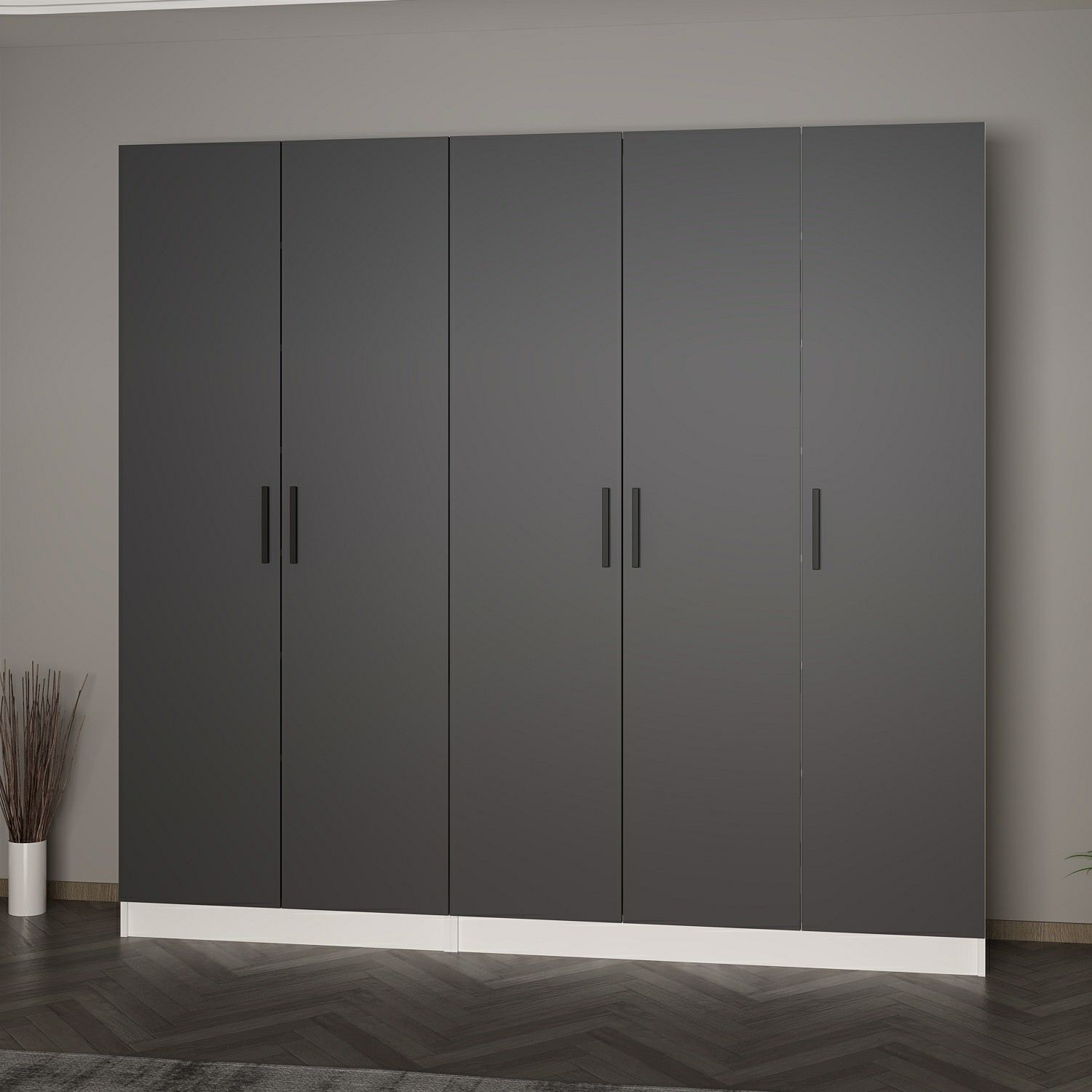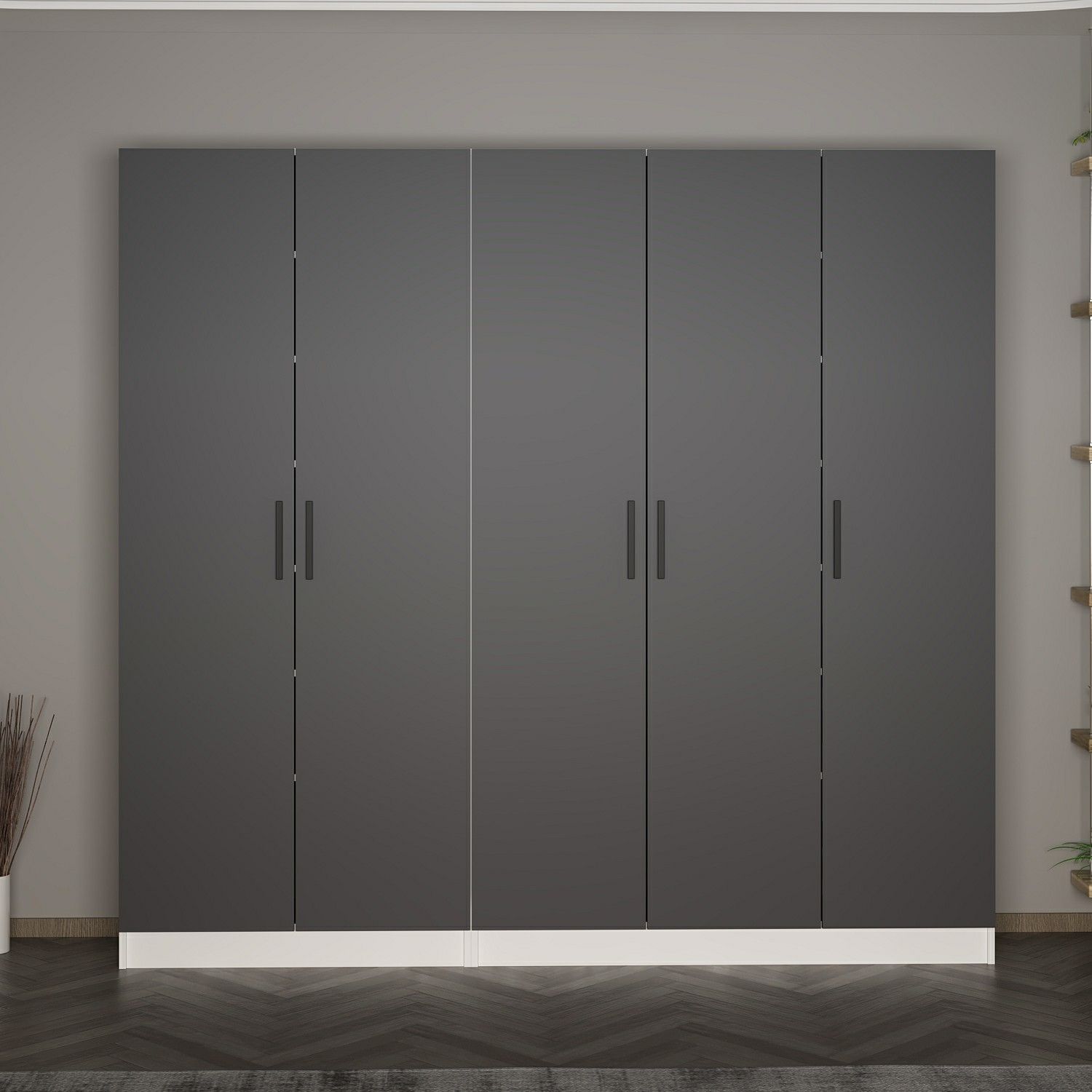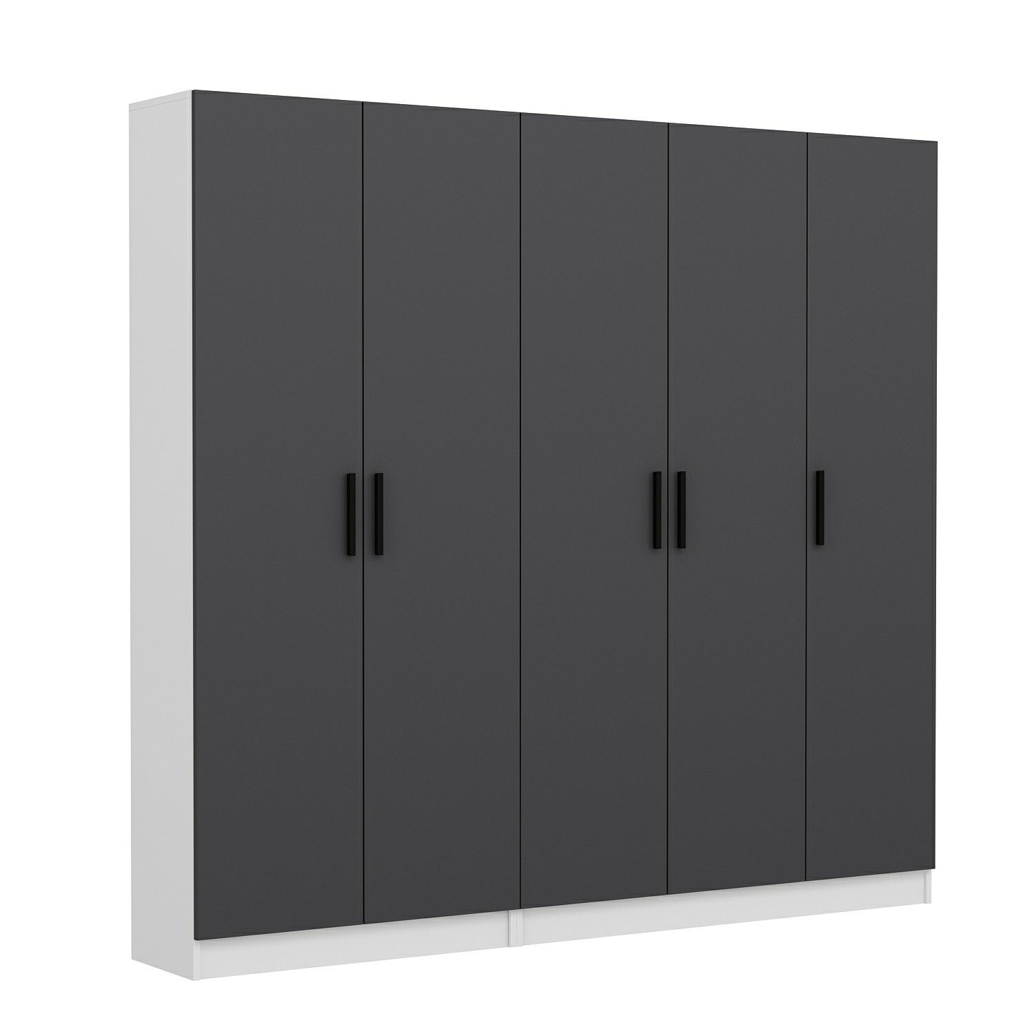 Minar Kale 210 Cm 5 Kapaklı 3B Raf Portmanto Beyaz Antrasit