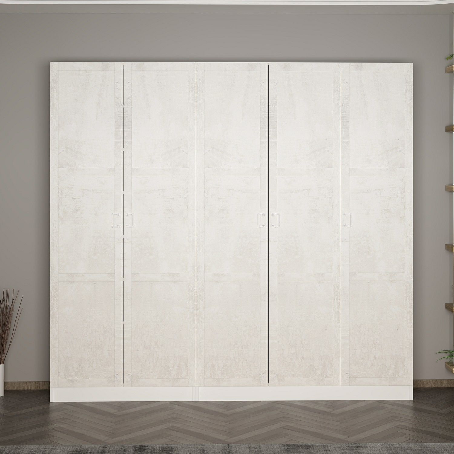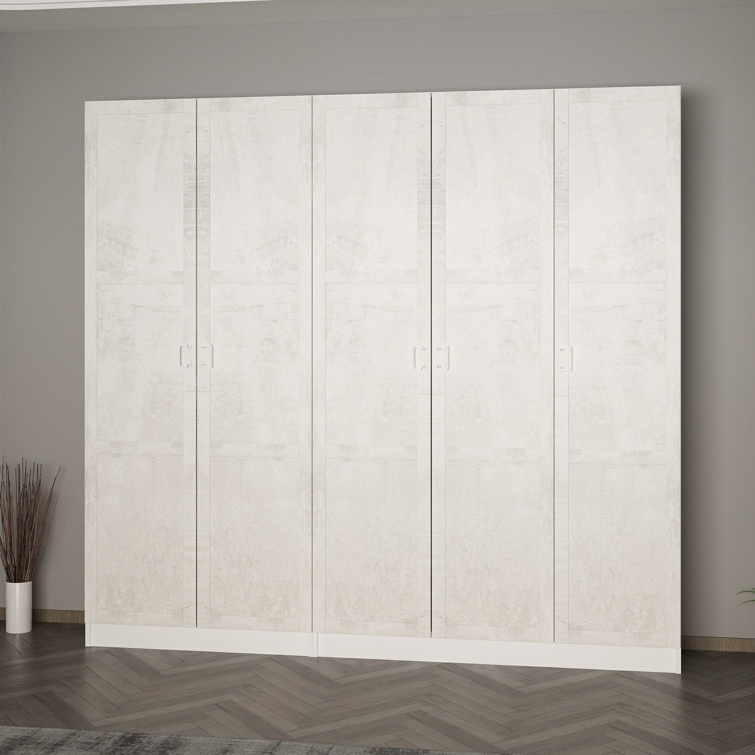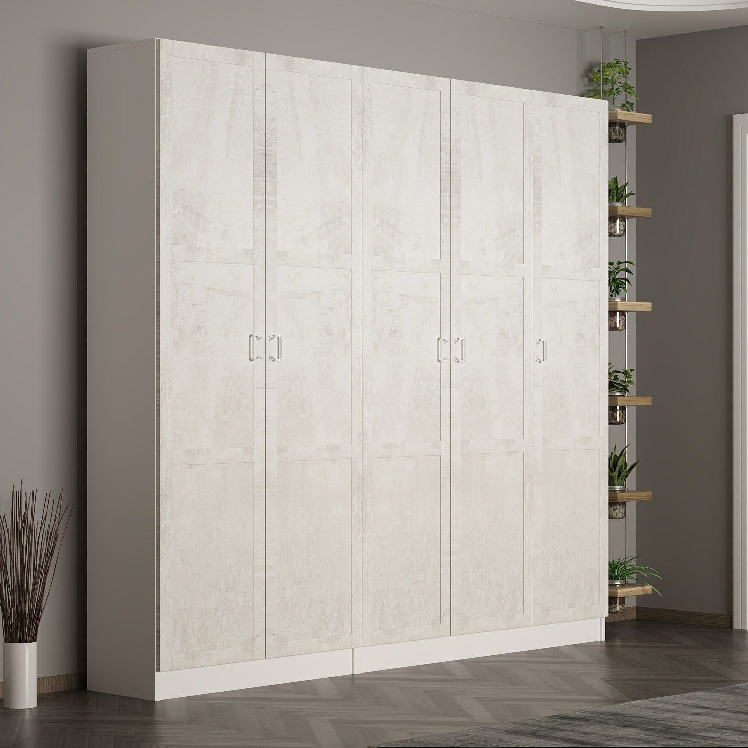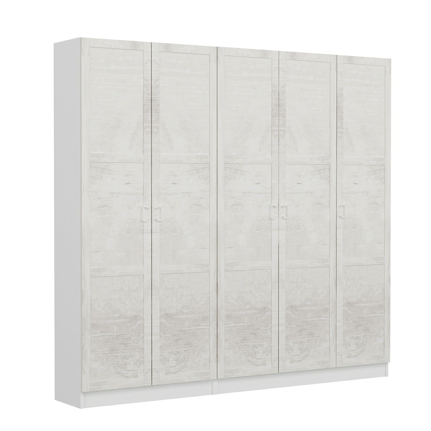 Minar Kale 210 Cm 5 Kapaklı 3B Raf Portmanto Beyaz Eskitme Beyaz