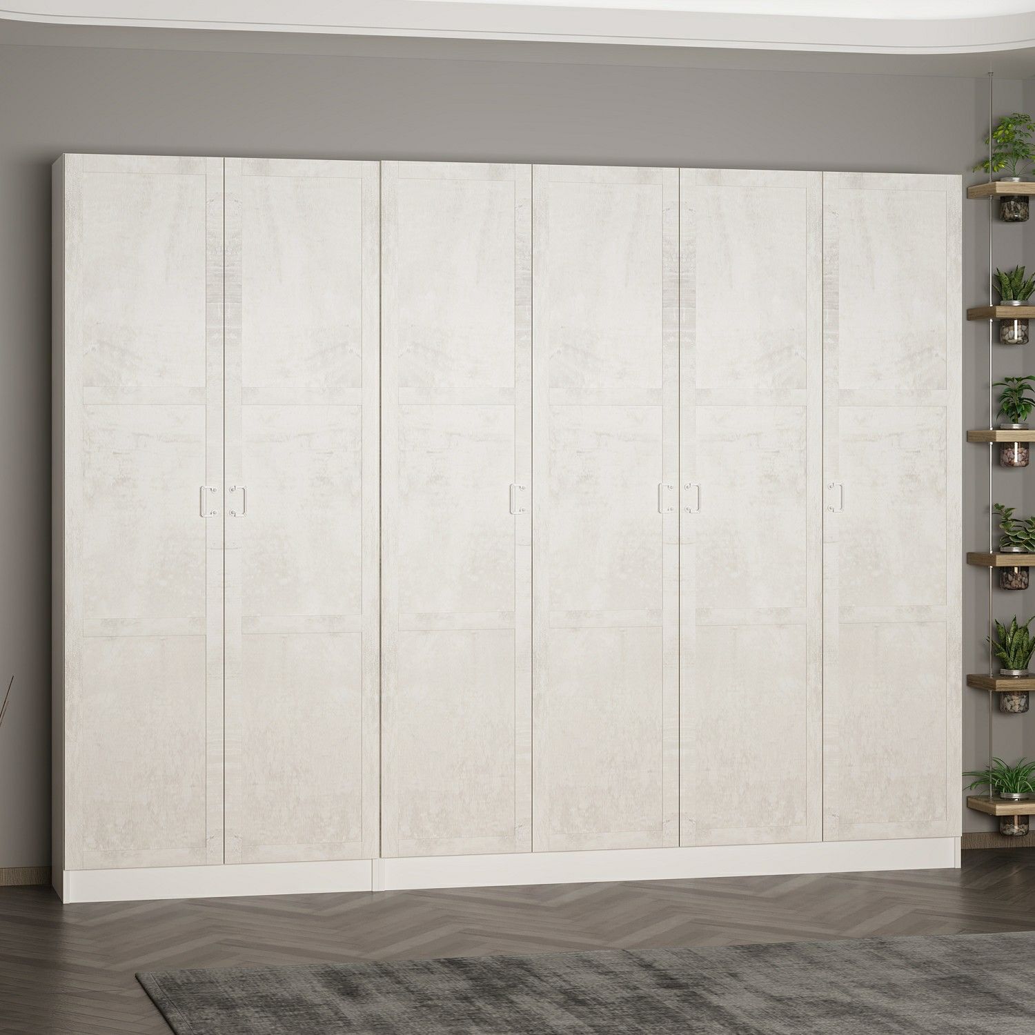 Minar Kale 210 Cm 6 Kapaklı 4B Raf Portmanto Beyaz Eskitme Beyaz