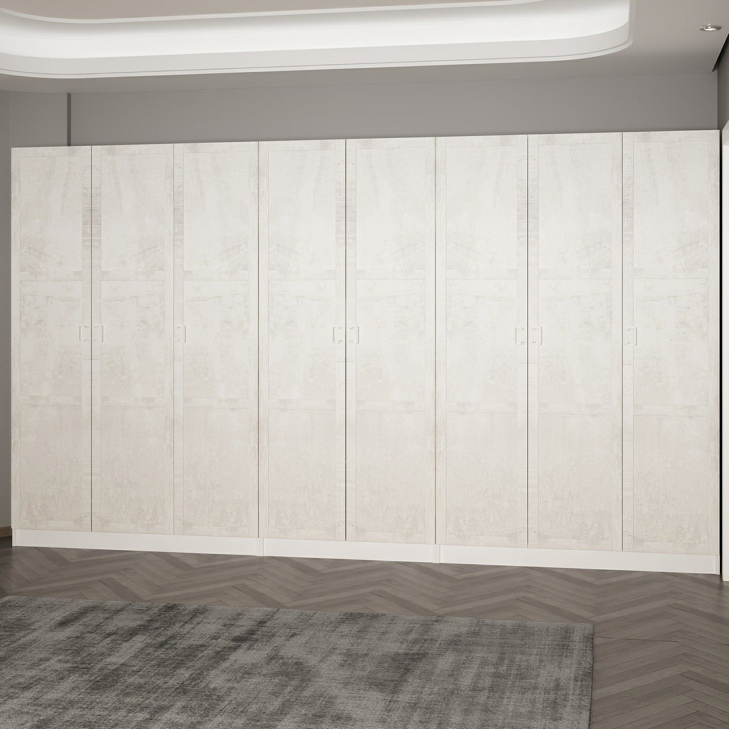 Minar Kale 210 Cm 8 Kapaklı 4B Raf Portmanto Beyaz Eskitme Beyaz