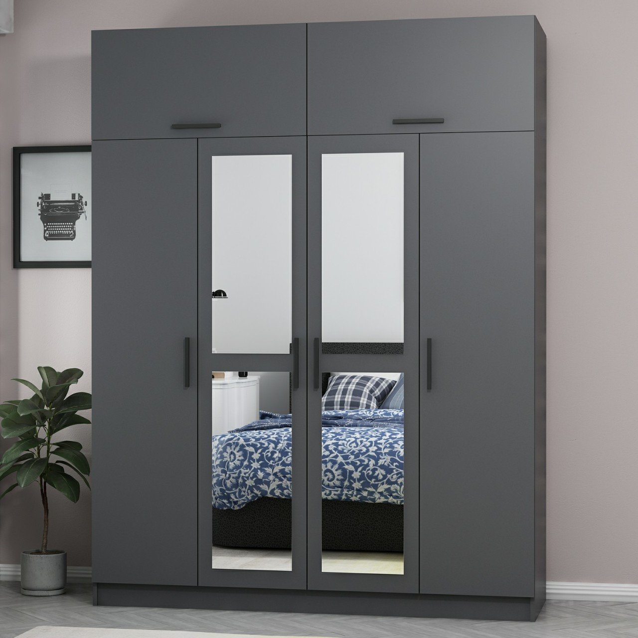Minar Kale 4 Kapaklı 2 Aynalı 2 Ç Dolap Ve Yüklük Antrasit