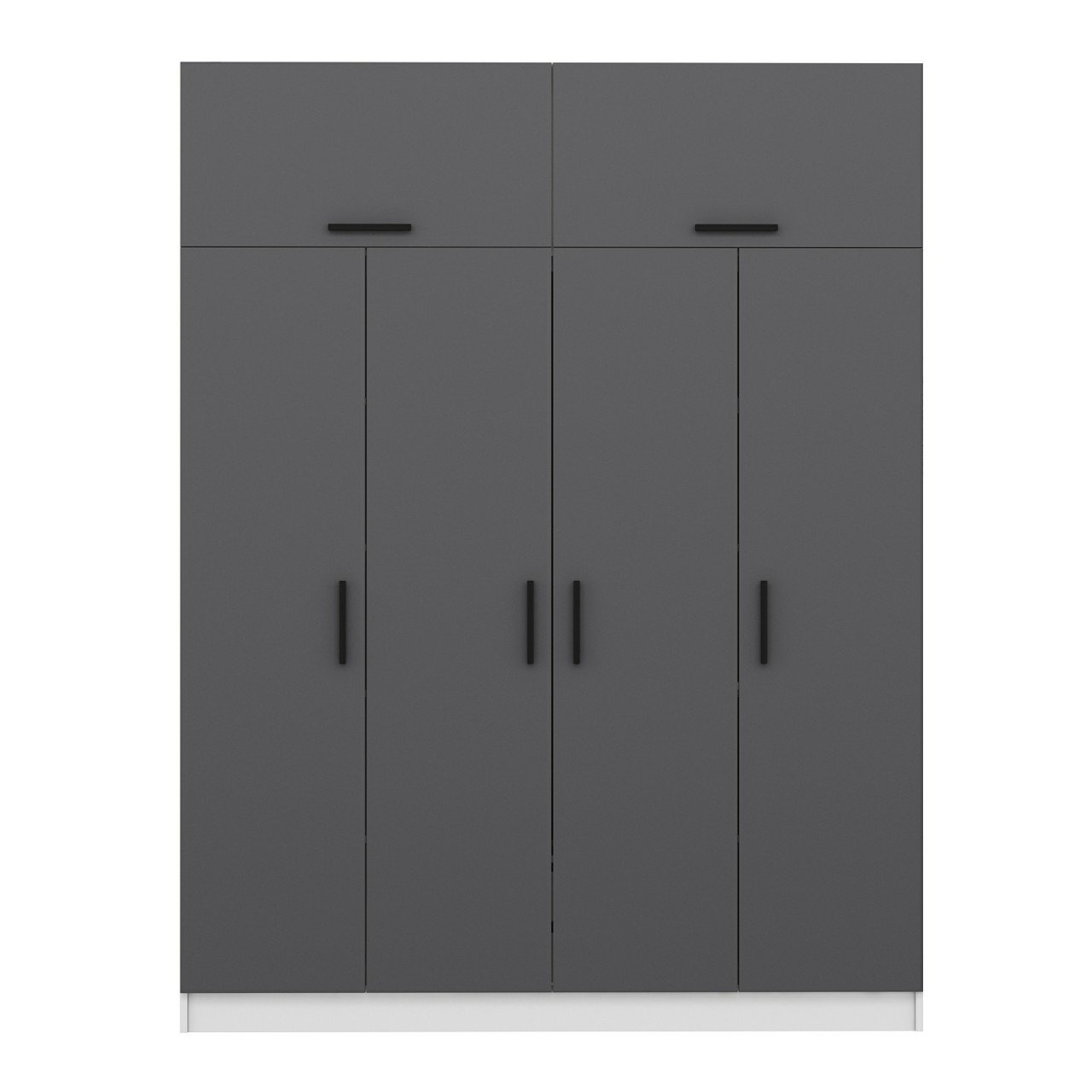 Minar Kale 4 Kapaklı 2 Çekmeceli Dolap Ve Yüklük Beyaz Antrasit