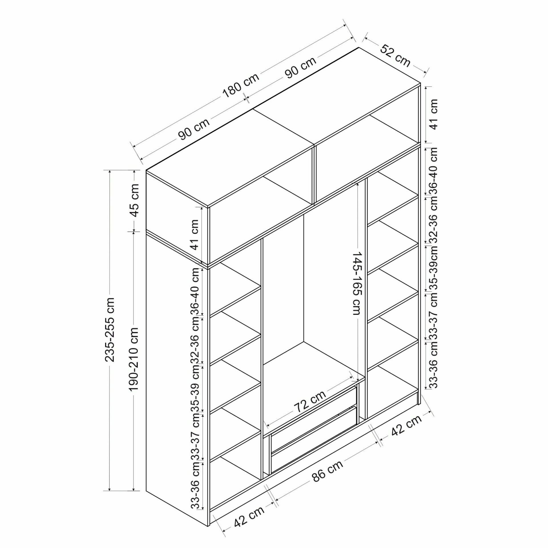 | Dolap Yükseklik | : | 235 cm, 255 cm |