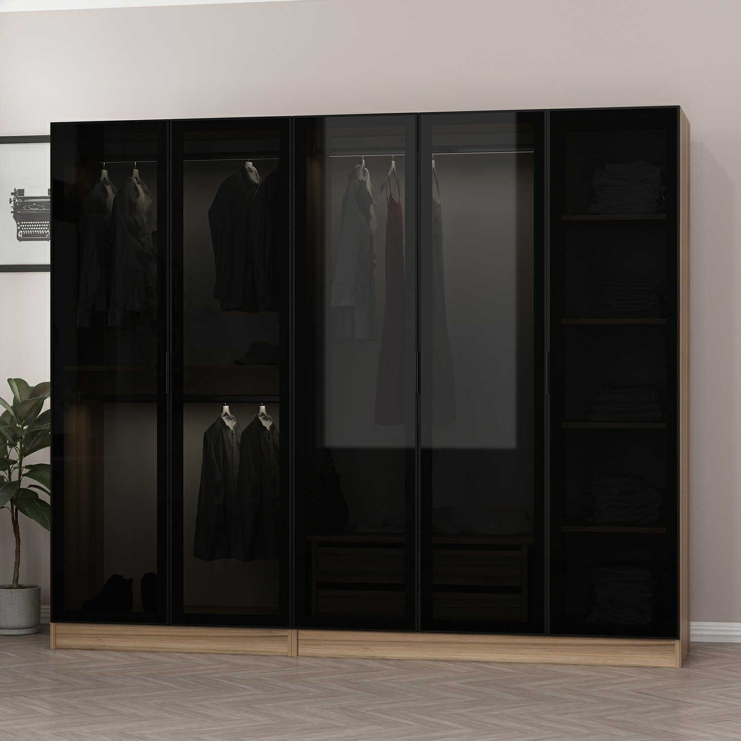 Kale 5 Füme Cam Kapaklı 2Ç Dolap Dore Füme Cam 210CM