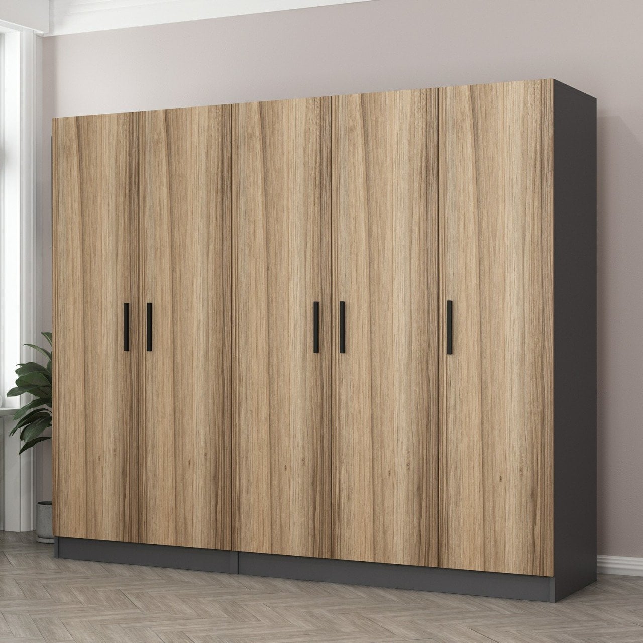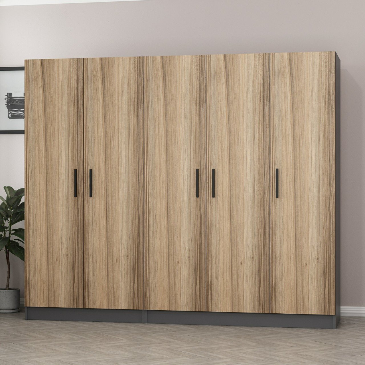 Minar Kale 5 Kapaklı 2 Çekmeceli Dolap Antrasit Dore