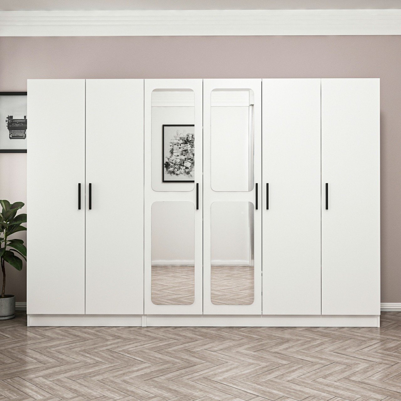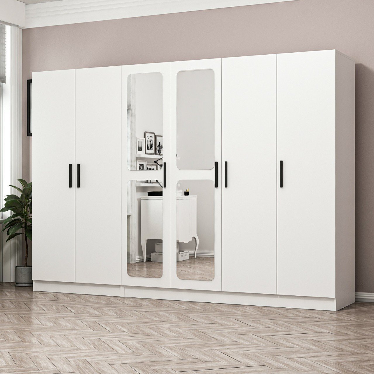 Minar Kale 6 Kapak Aynalı 2 Çekmece Zincir Dolap - Beyaz