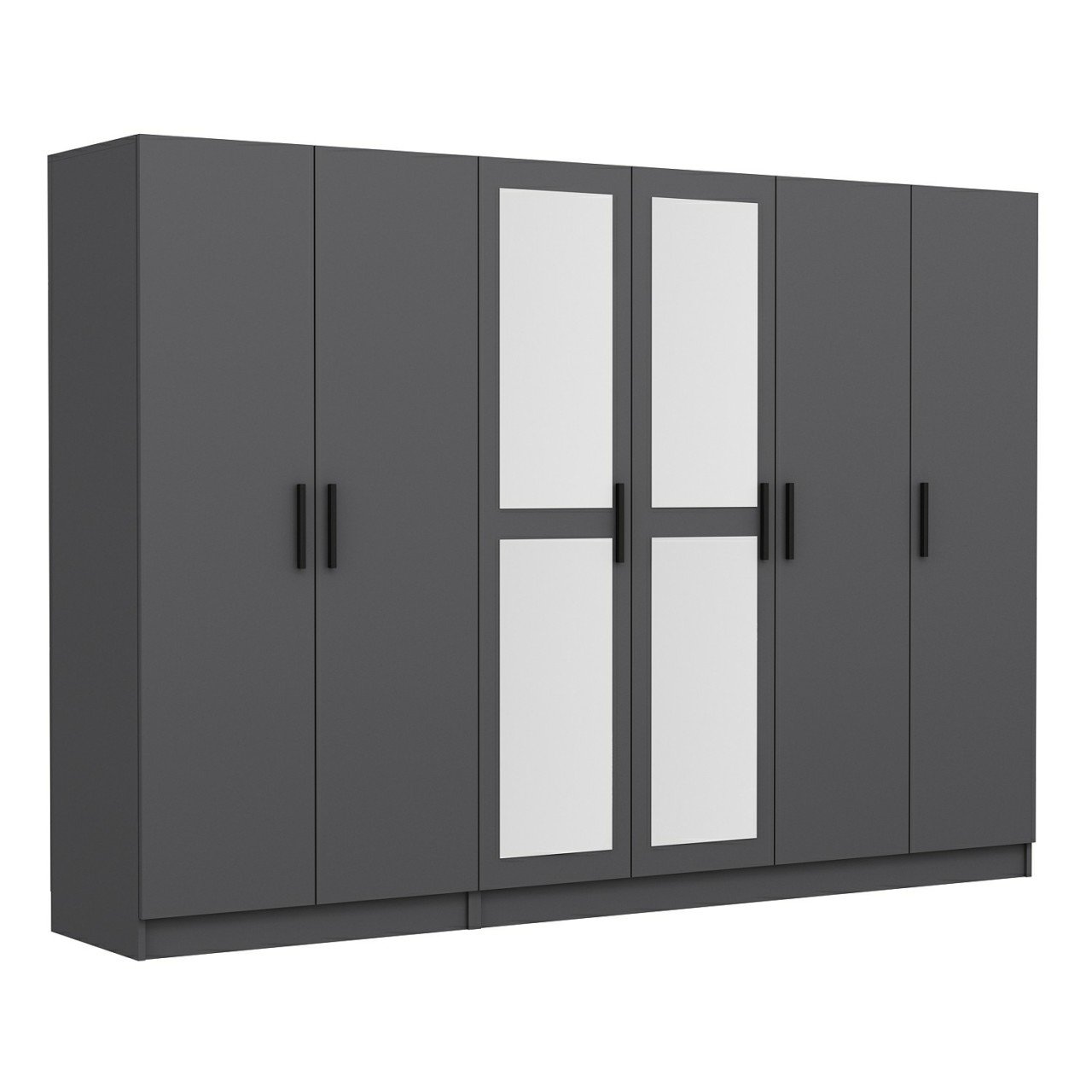 Minar Kale 6 Kapaklı 2 Aynalı 2 Çekmeceli Dolap Antrasit