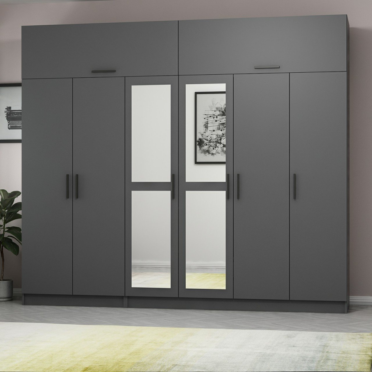 Minar Kale 6 Kapaklı 2 Aynalı 2 Ç Dolap Ve Yüklük Antrasit