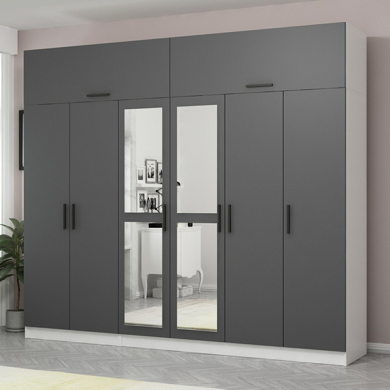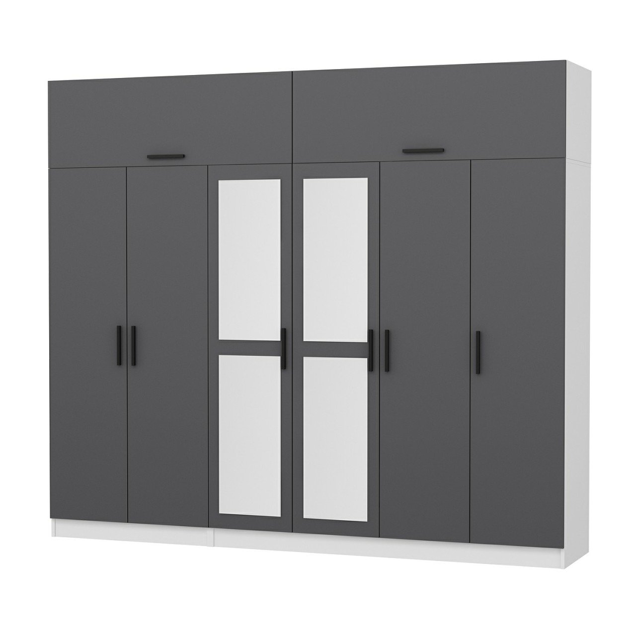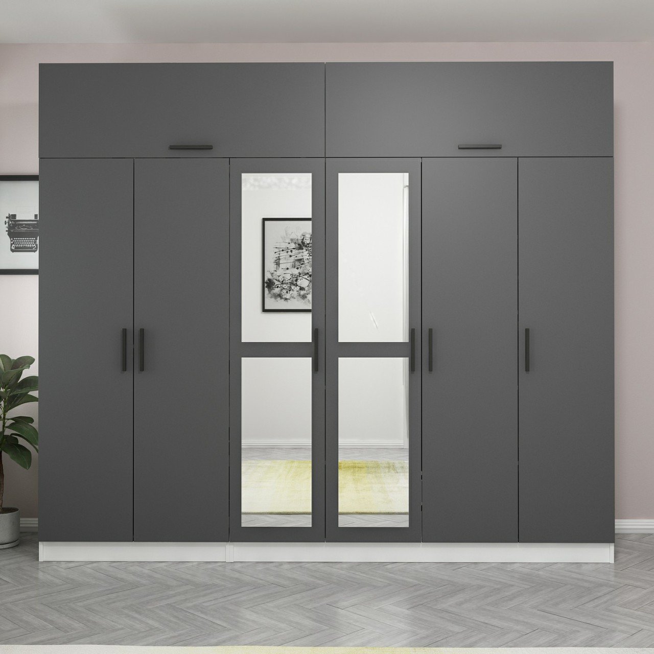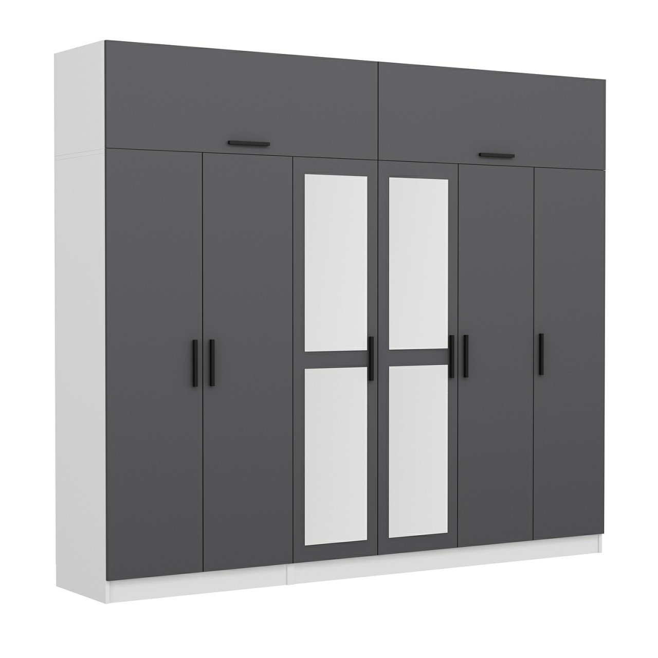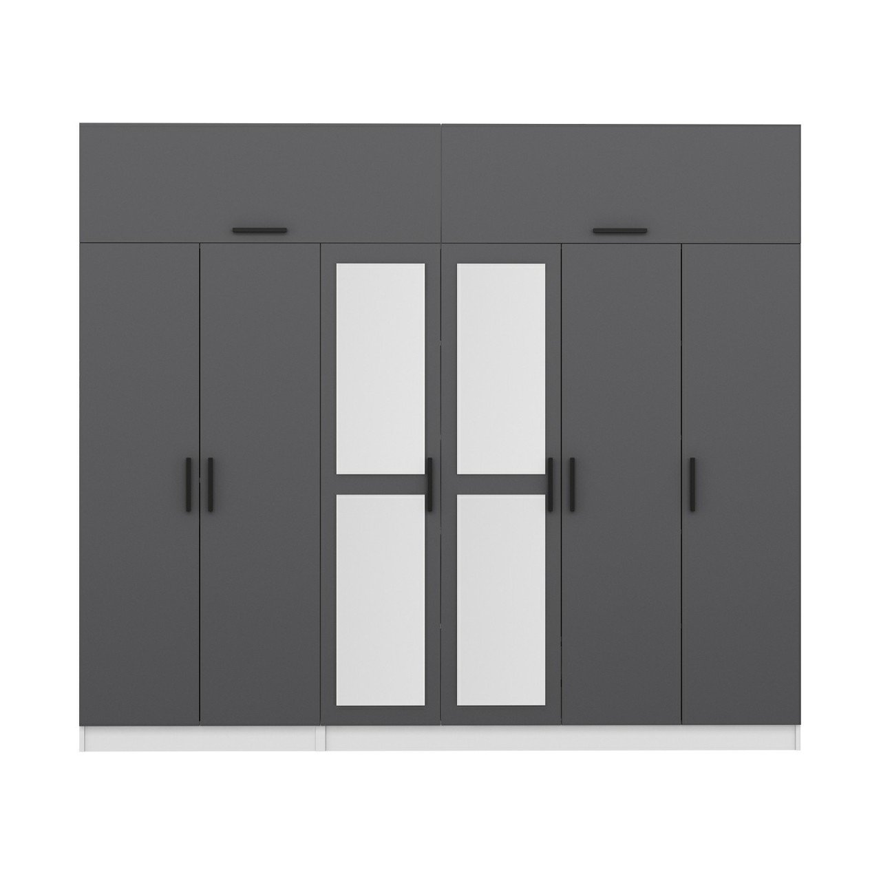 Minar Kale 6 Kapaklı 2 Aynalı 2 Ç Dolap Ve Yüklük Beyaz Antrasit