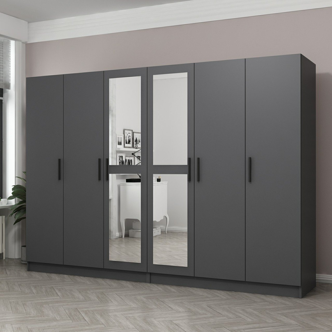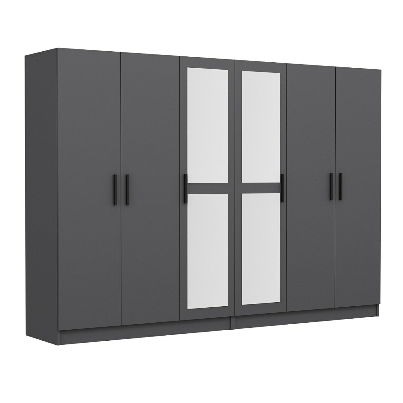Minar Kale 6 Kapaklı 2 Aynalı 4 Çekmeceli Dolap Antrasit