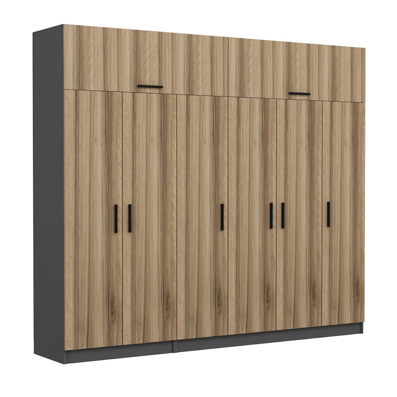 Minar Kale 6 Kapaklı 2 Çekmeceli Dolap Ve Yüklük Antrasit Dore