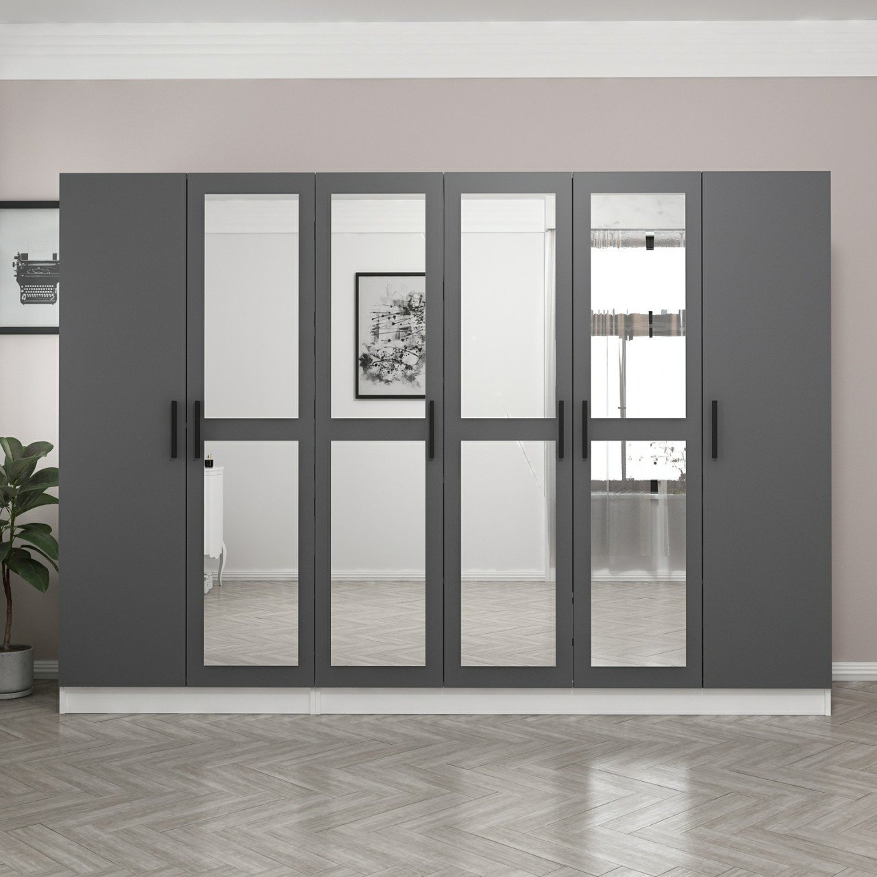 Minar Kale 6 Kapaklı 4 Aynalı 2 Çekmeceli Dolap Beyaz Antrasit