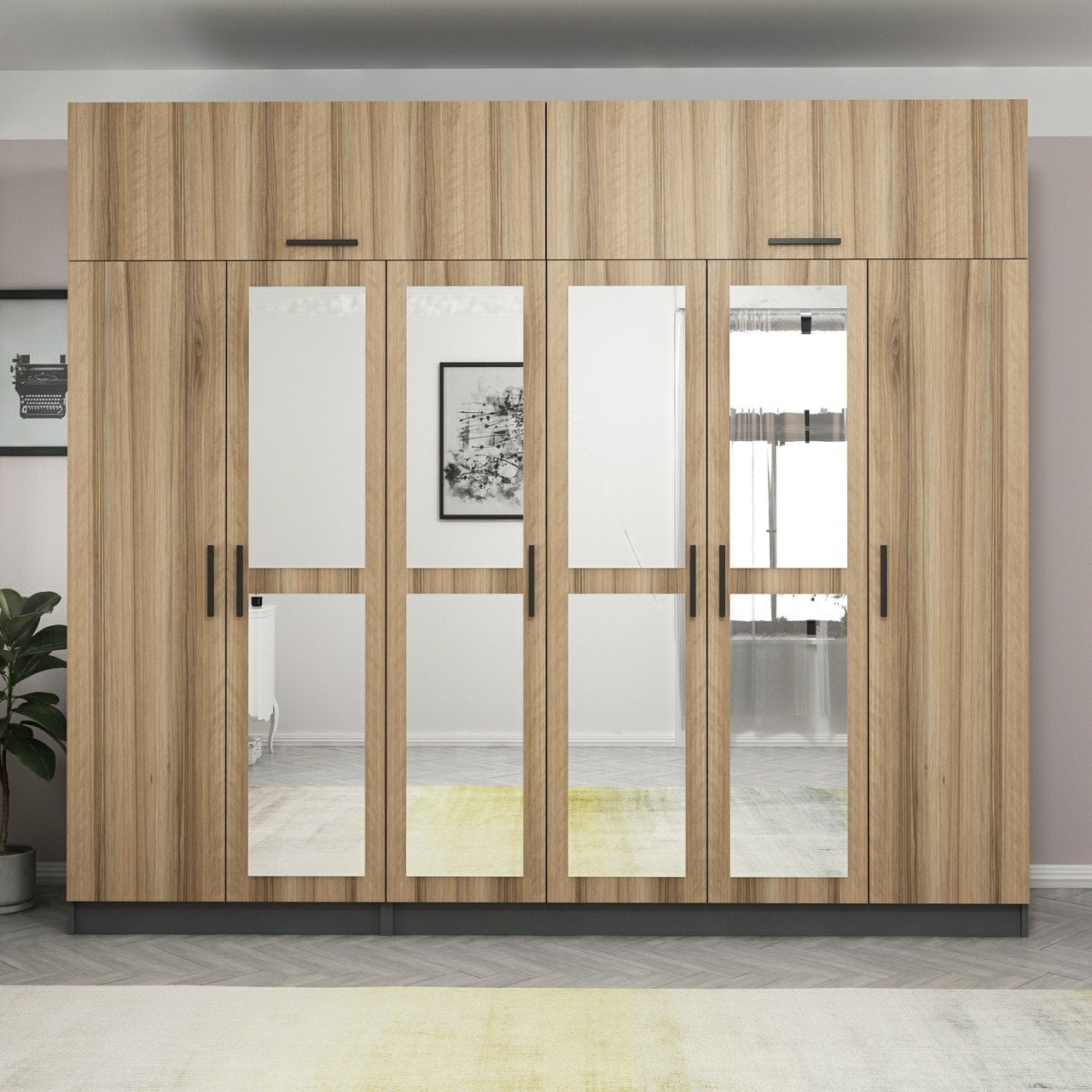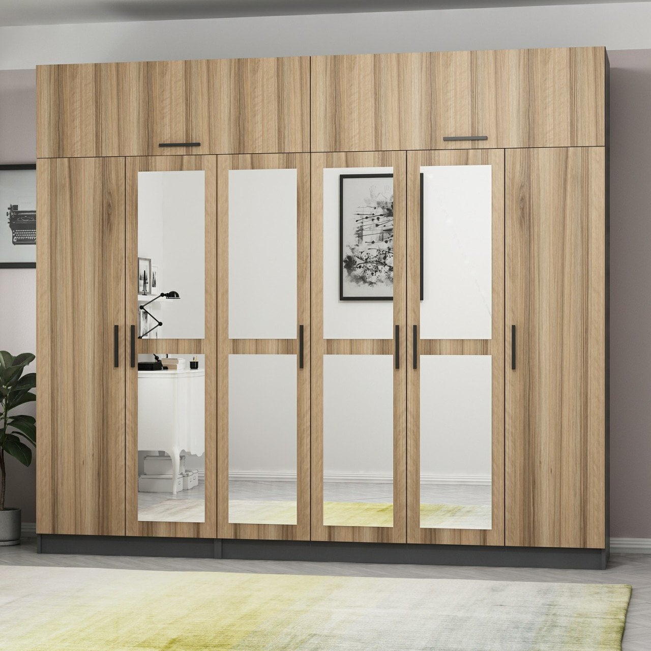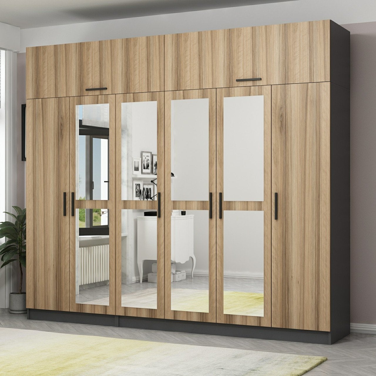 Minar Kale 6 Kapaklı 4 Aynalı 2 Ç Dolap Ve Yüklük Antrasit Dore