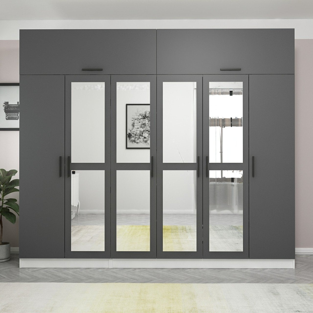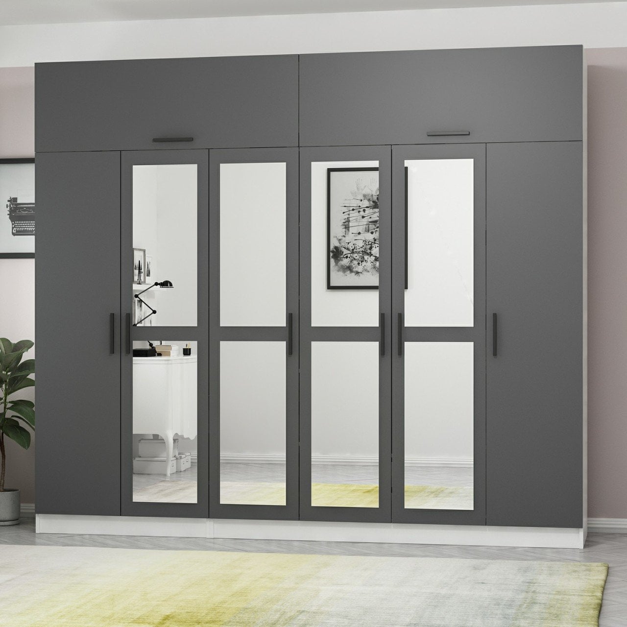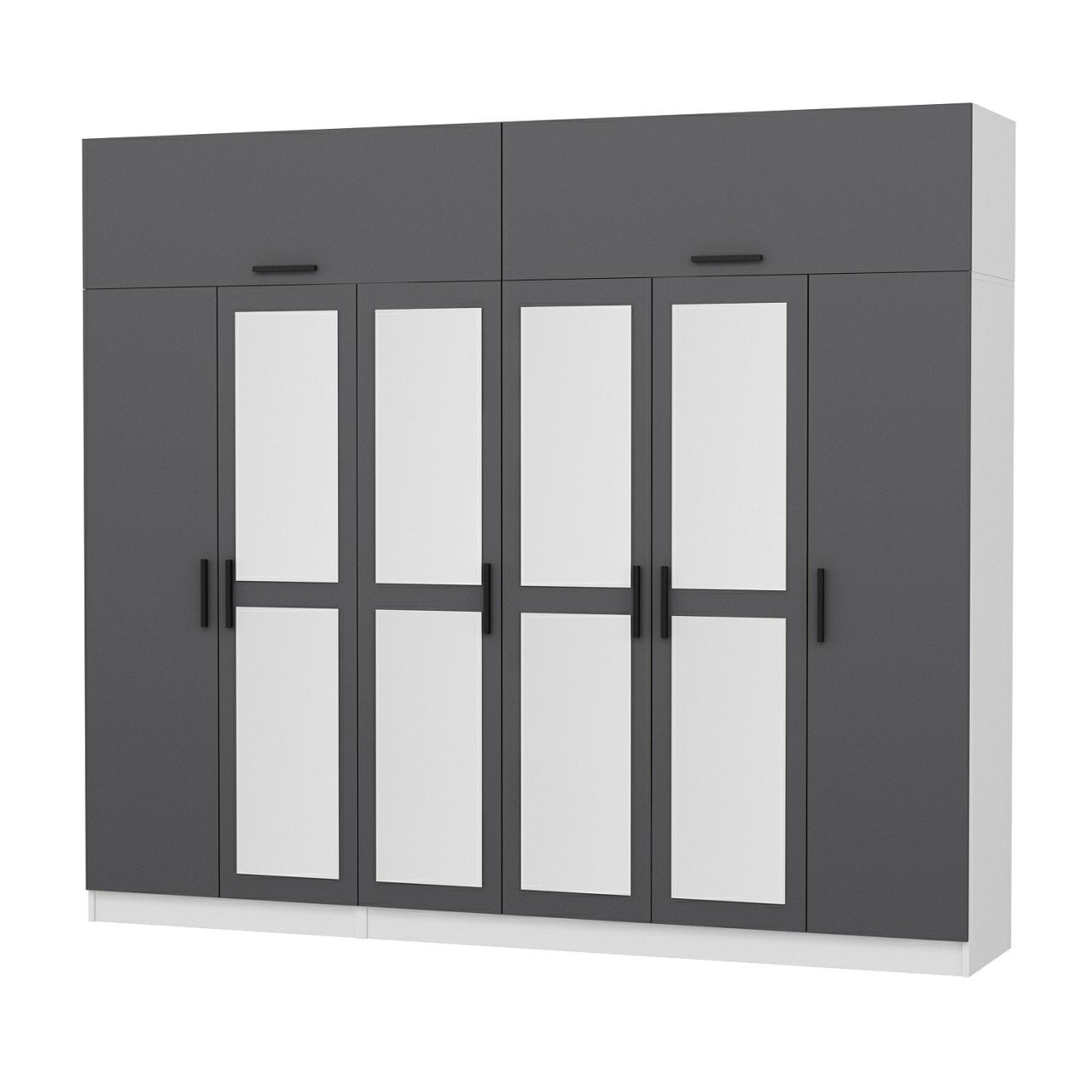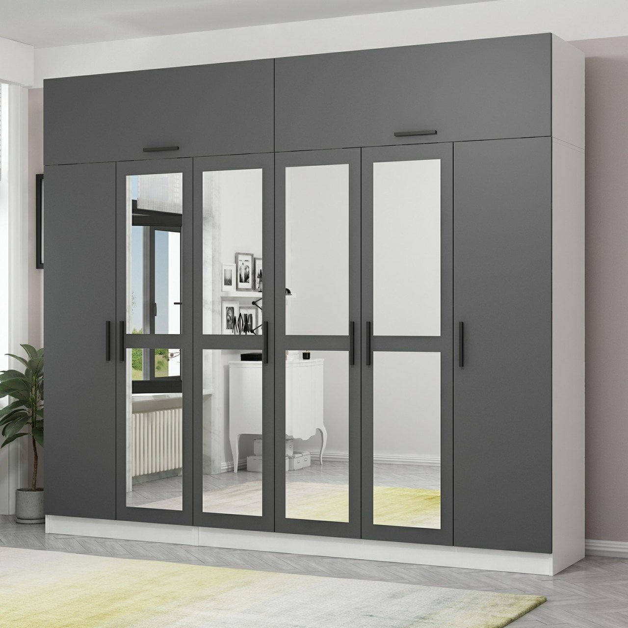 Minar Kale 6 Kapaklı 4 Aynalı 2 Ç Dolap Ve Yüklük Beyaz Antrasit