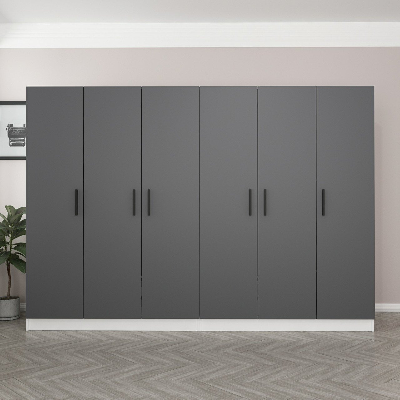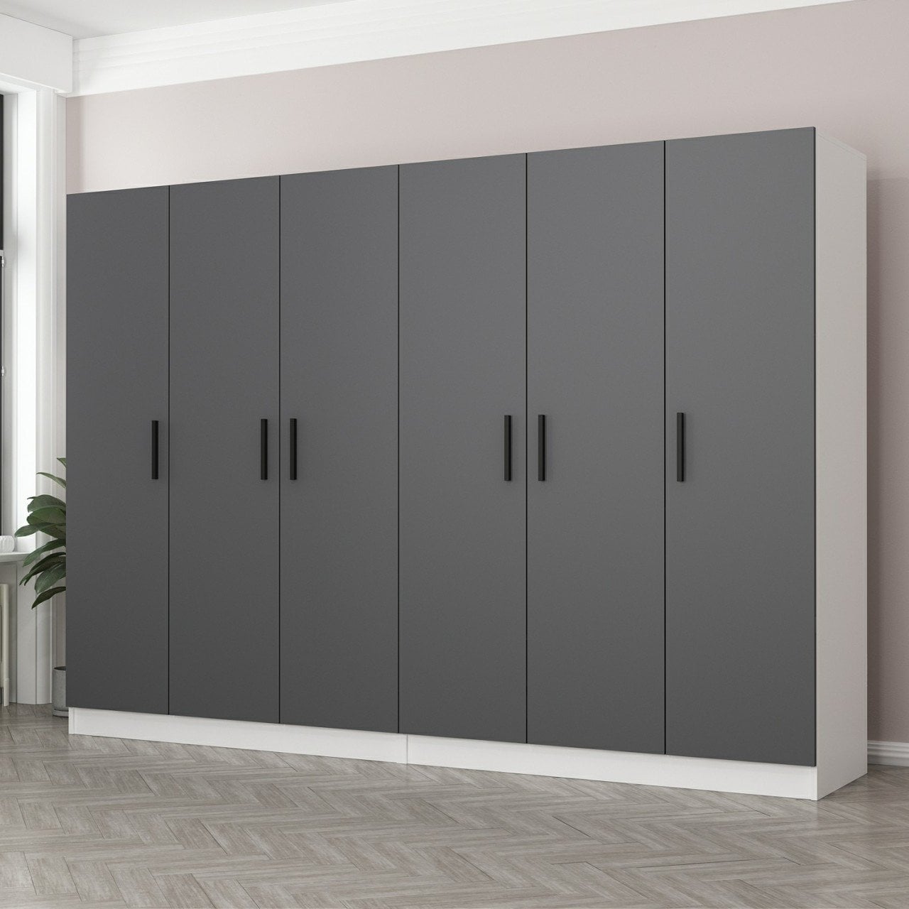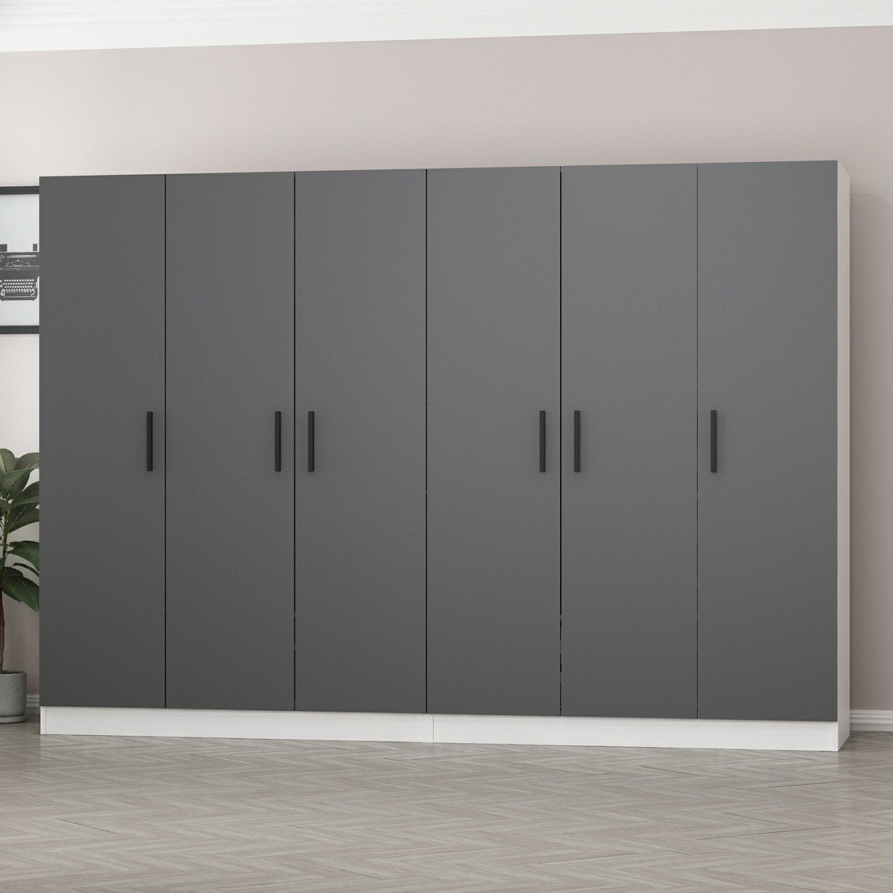 Minar Kale 6 Kapaklı 4 Çekmeceli Dolap Beyaz Antrasit