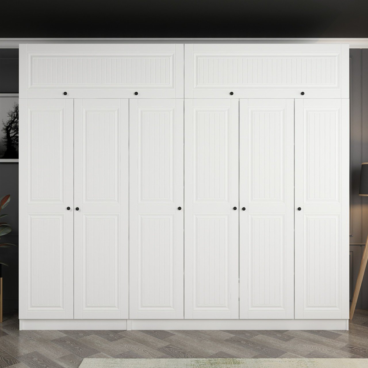 Minar Kale 6 Mebran Kapaklı 2 İç Çekmeceli Dolap Ve Yüklük Beyaz