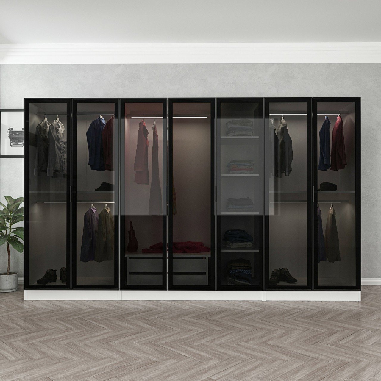 Minar Kale 7 Cam Kapaklı 2 Çekmeceli Dolap - Beyaz/Siyah