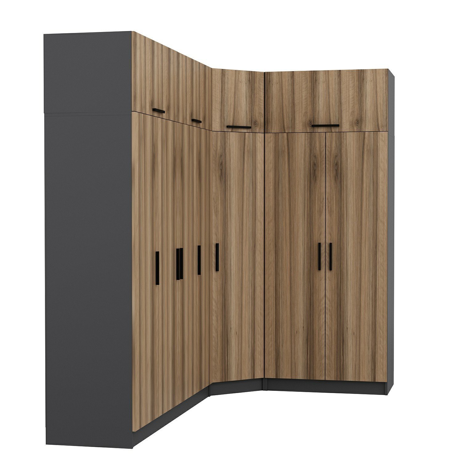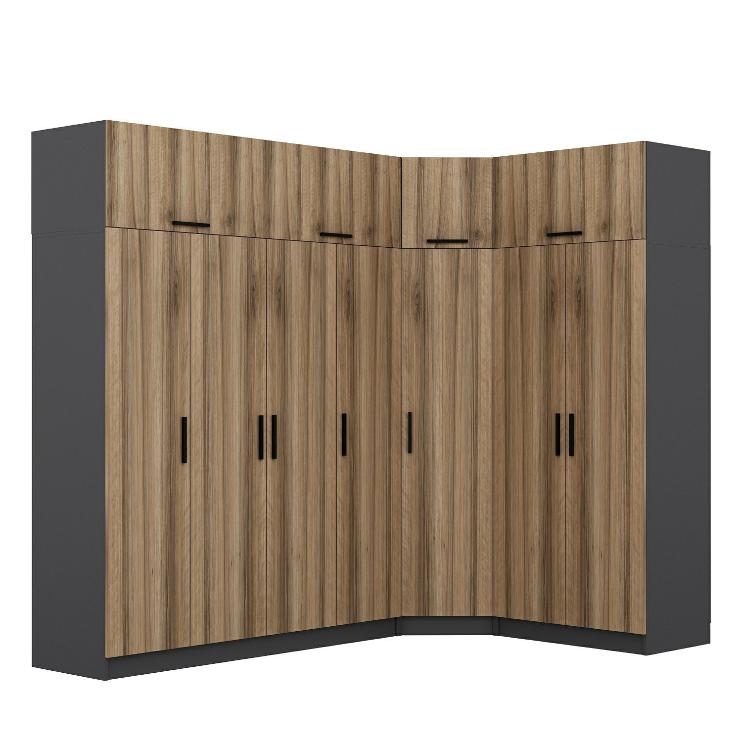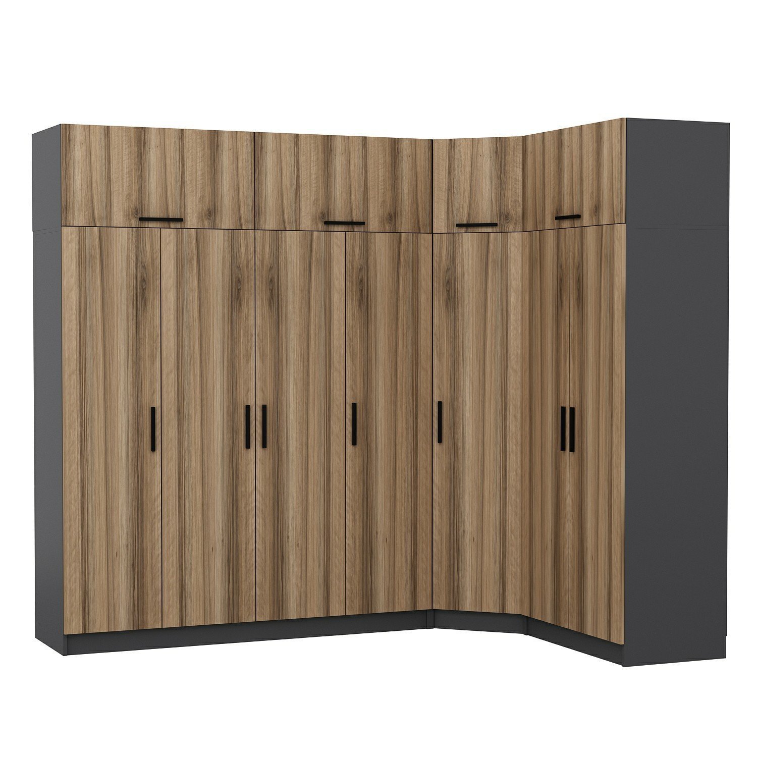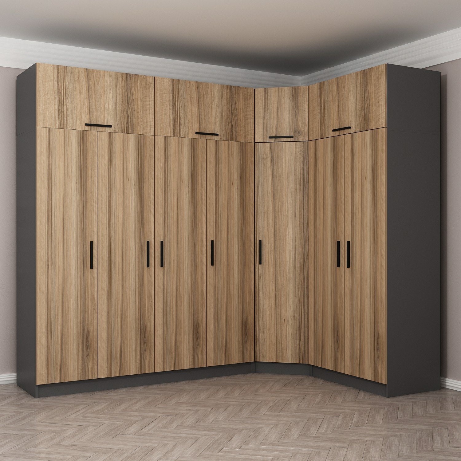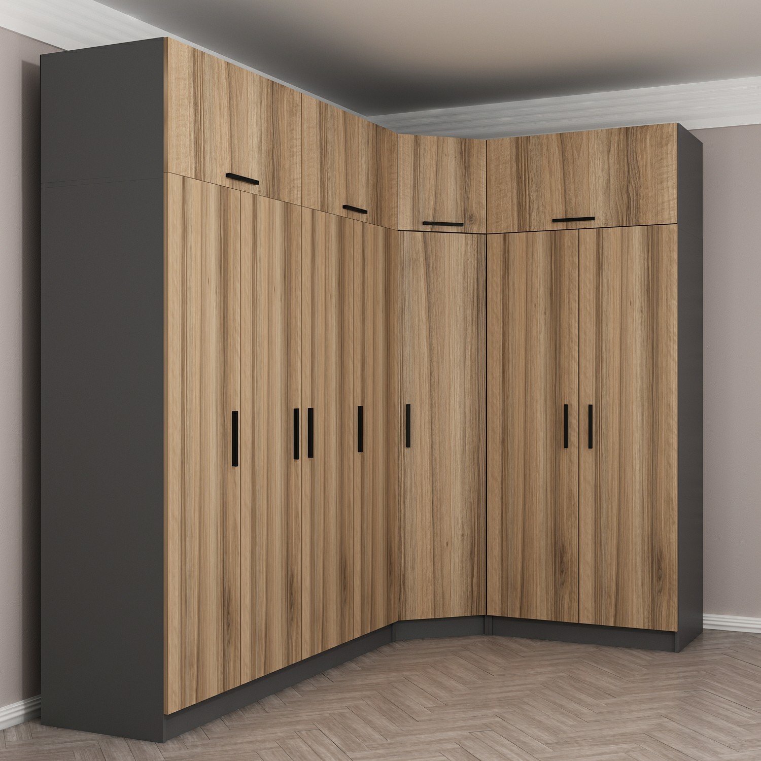 Minar Kale 7 Kapaklı 2 Ç Köşe Dolap + Yüklük Antrasit Dore