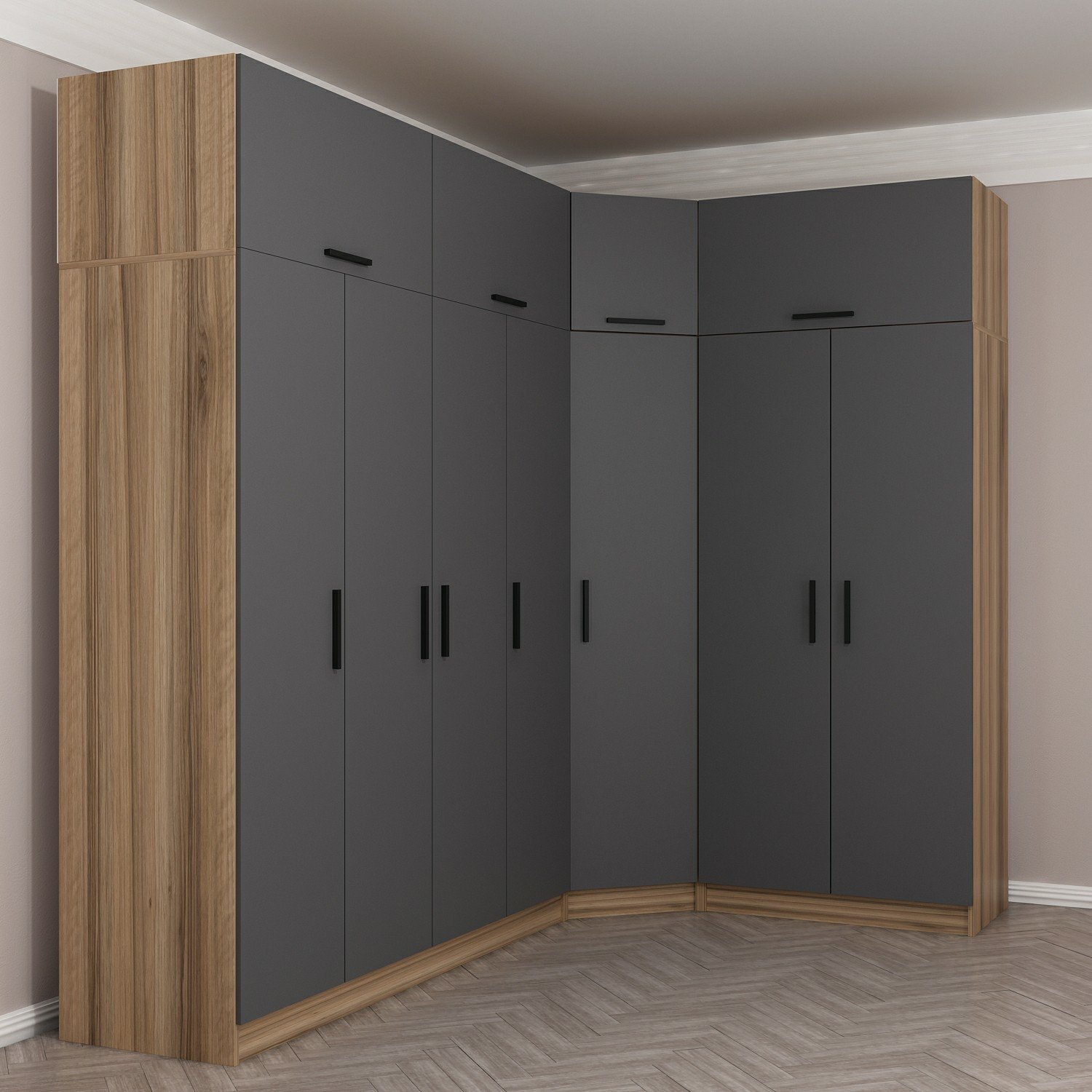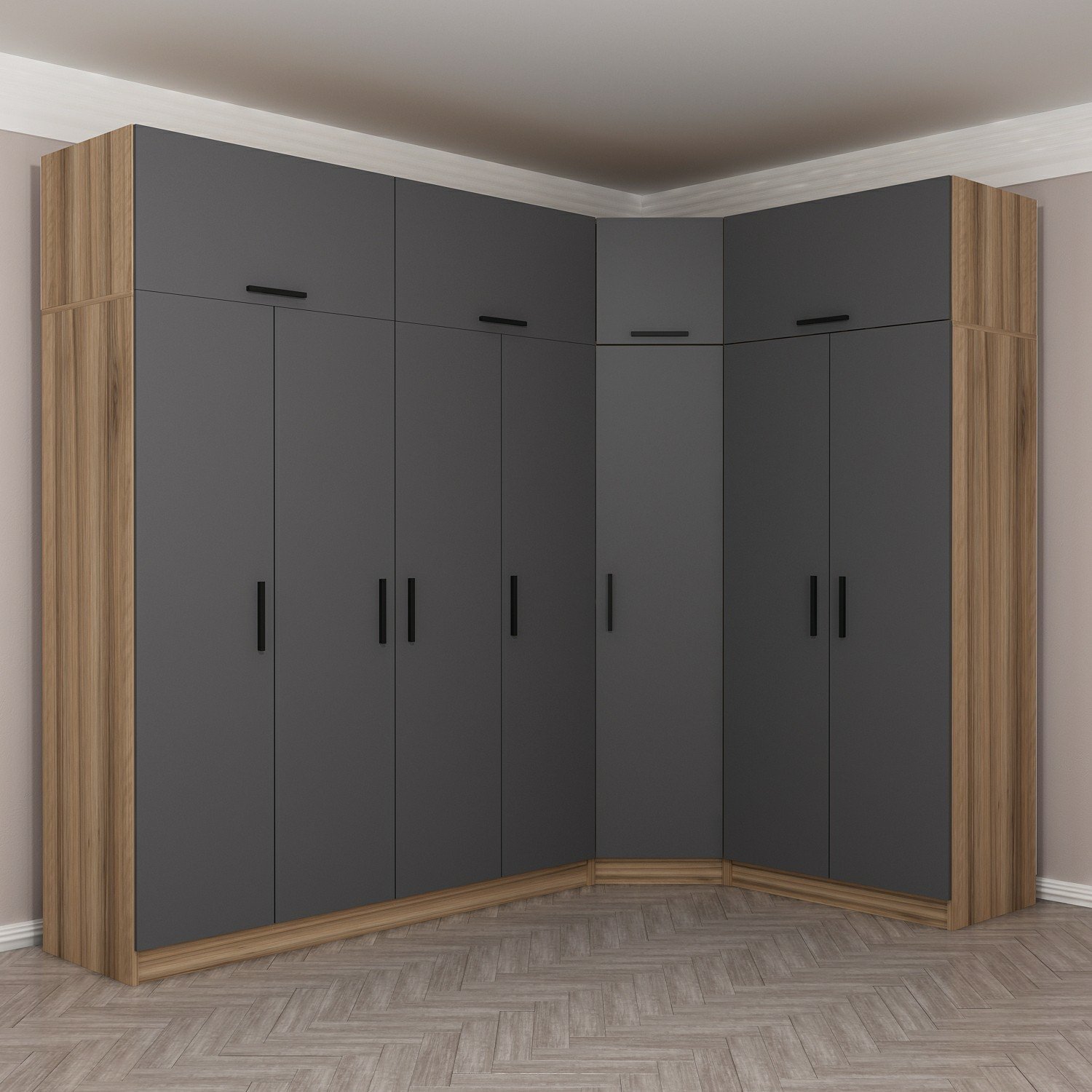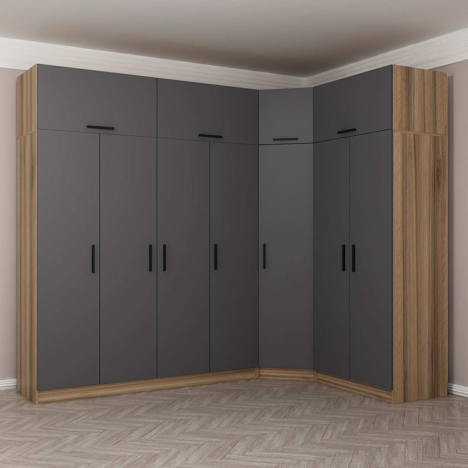 Minar Kale 7 Kapaklı 2 Ç Köşe Dolap + Yüklük Dore Antrasit