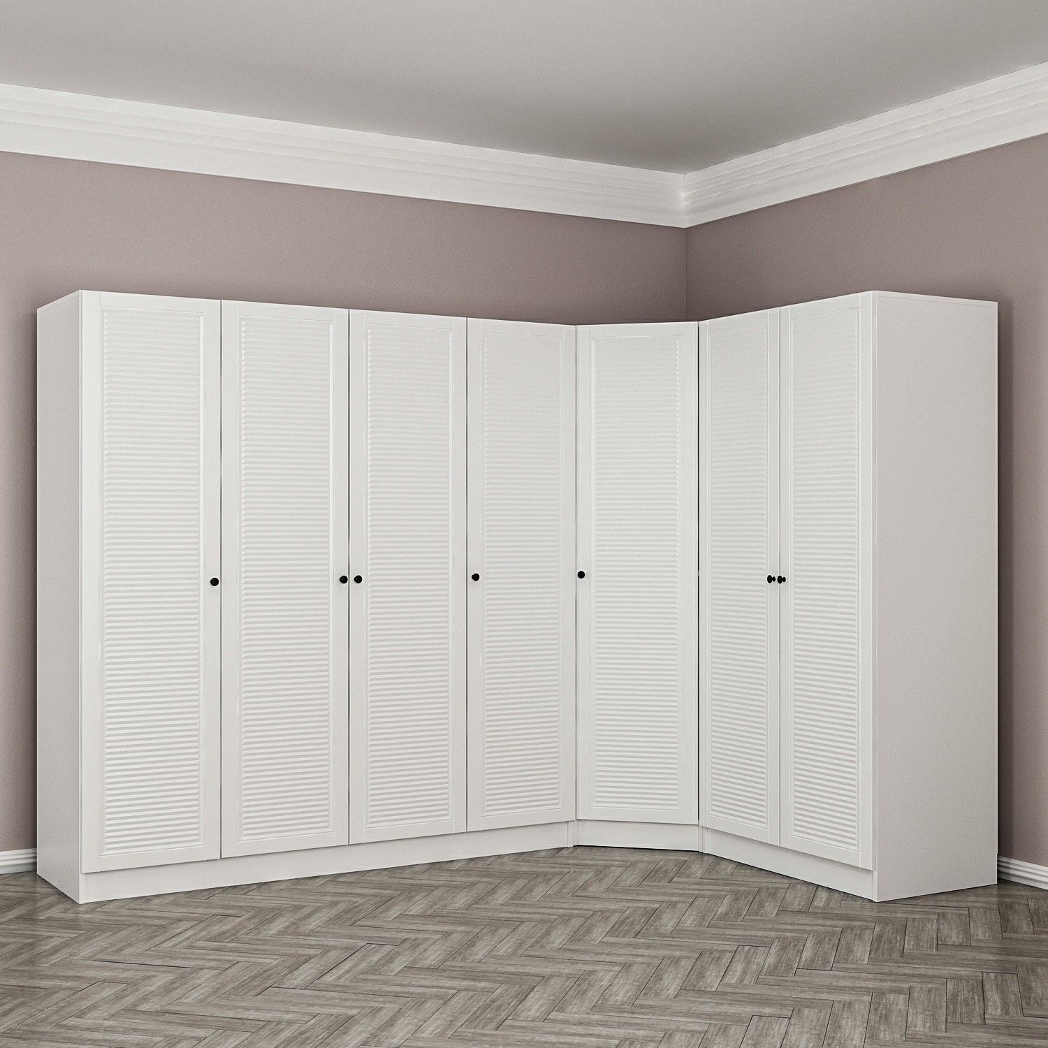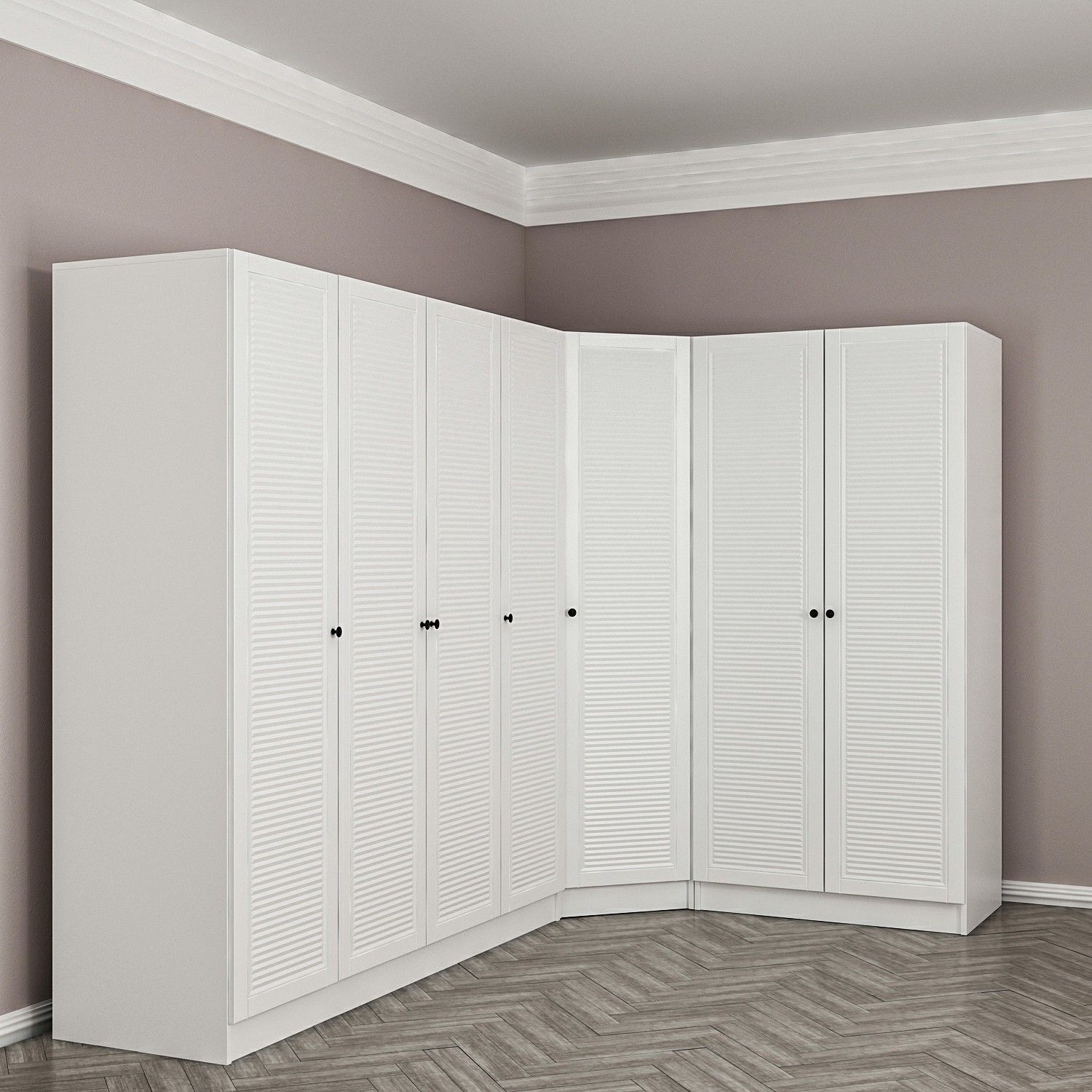 Minar Kale 7 Kapaklı 2 Çekmeceli Köşe Dolap Beyaz Mebran Panjur 190CM