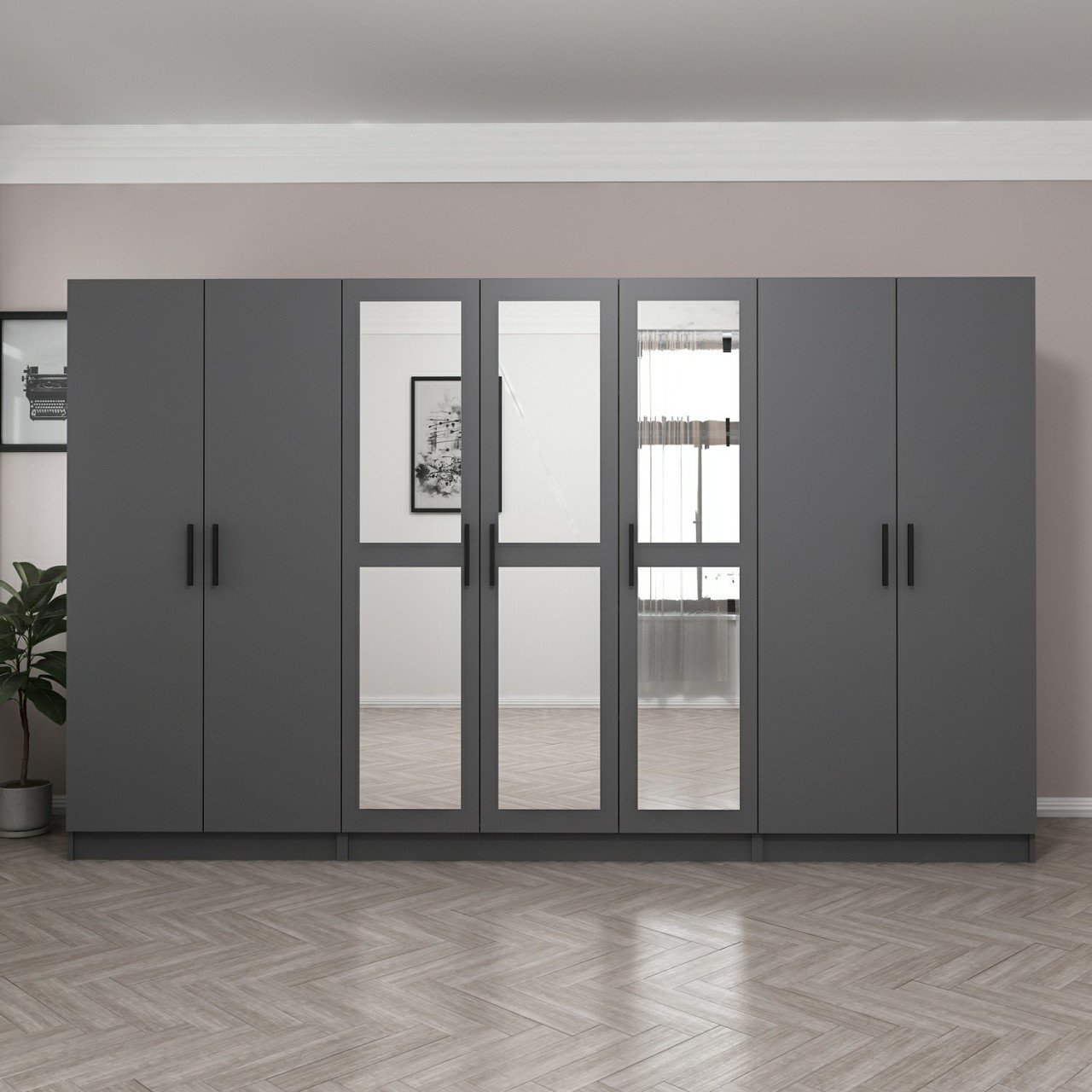 Minar Kale 7 Kapaklı 3 Aynalı 2 Çekmeceli Dolap Antrasit