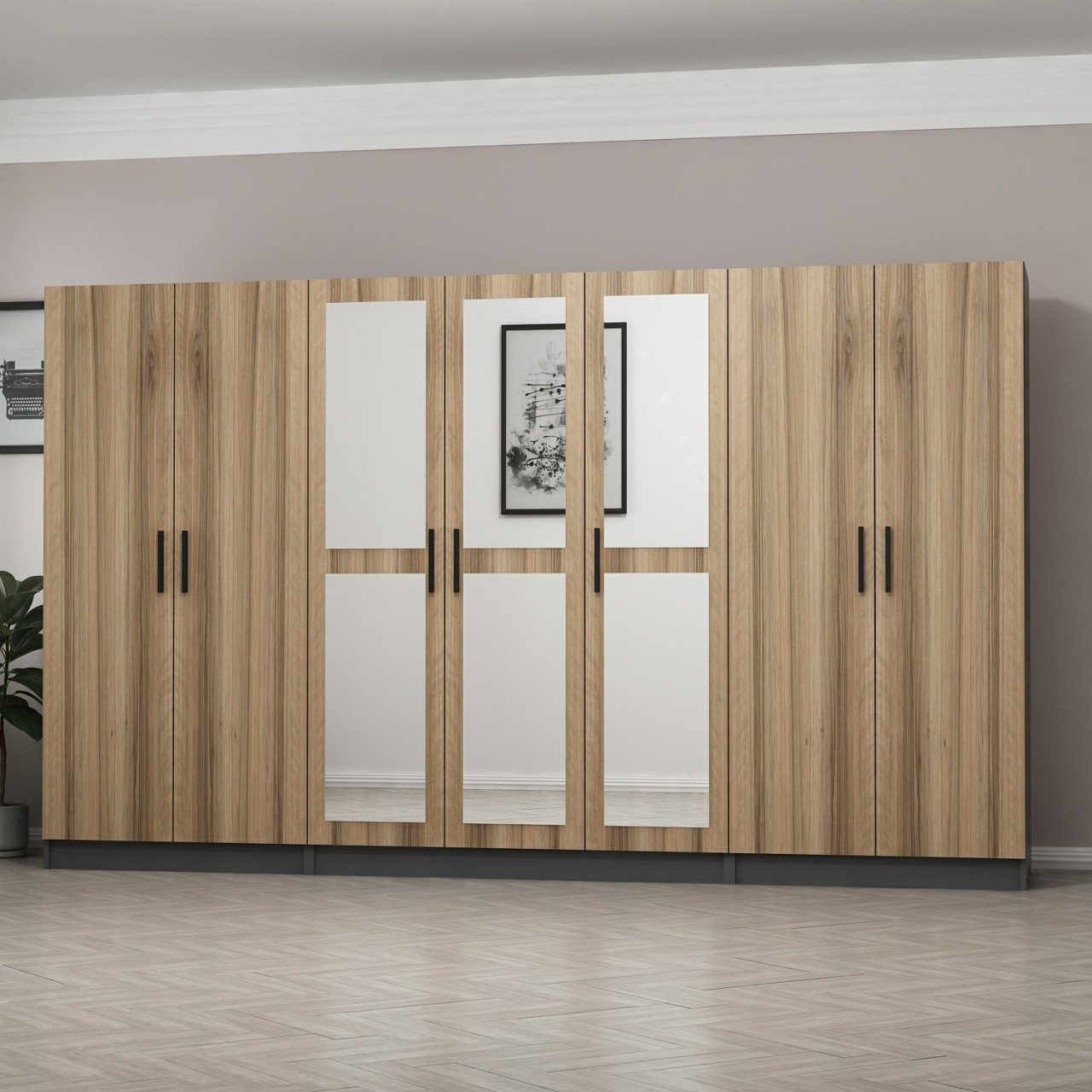 Minar Kale 7 Kapaklı 3 Aynalı 2 Çekmeceli Dolap Antrasit Dore