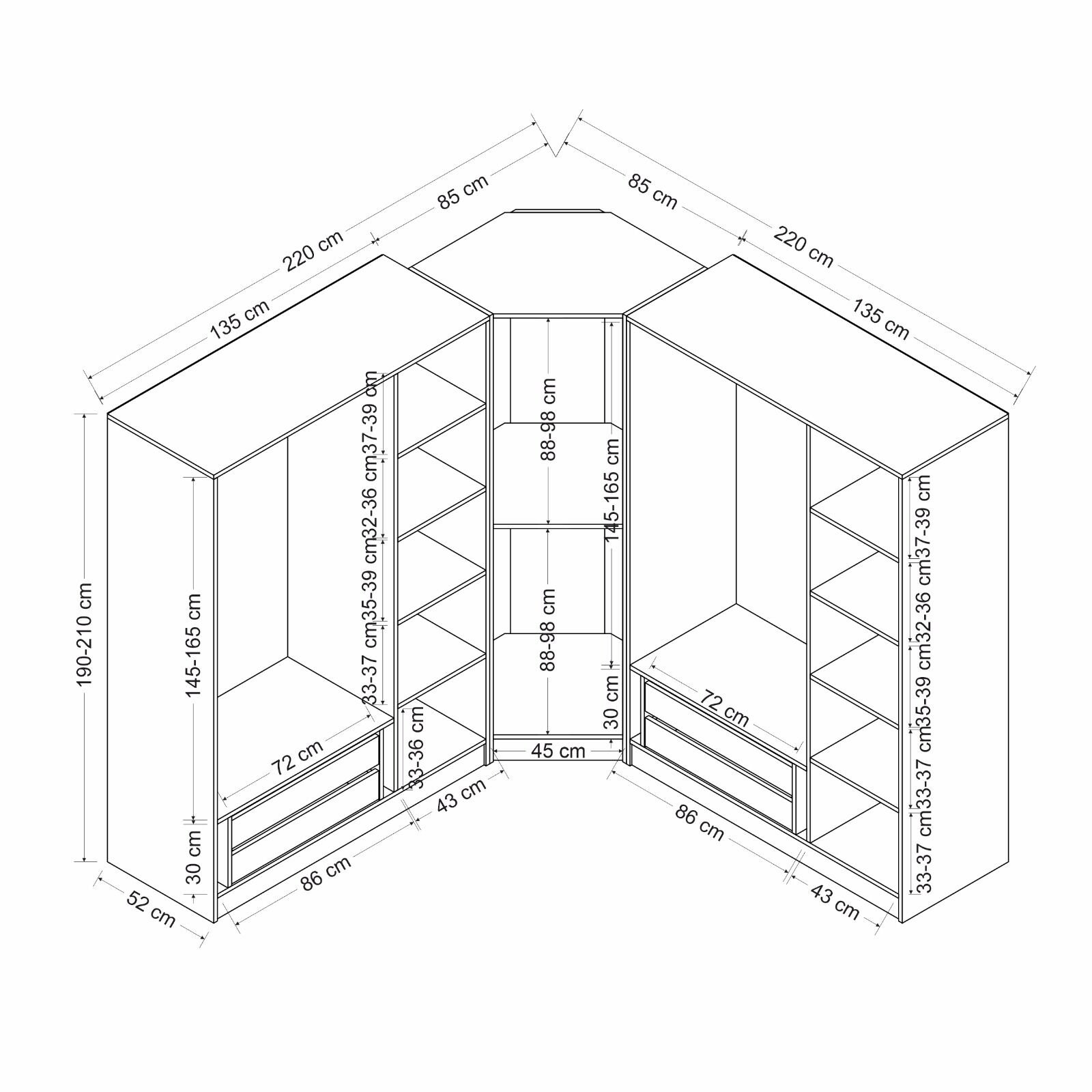 | Dolap Yükseklik | : | 210 cm, 190 cm |
