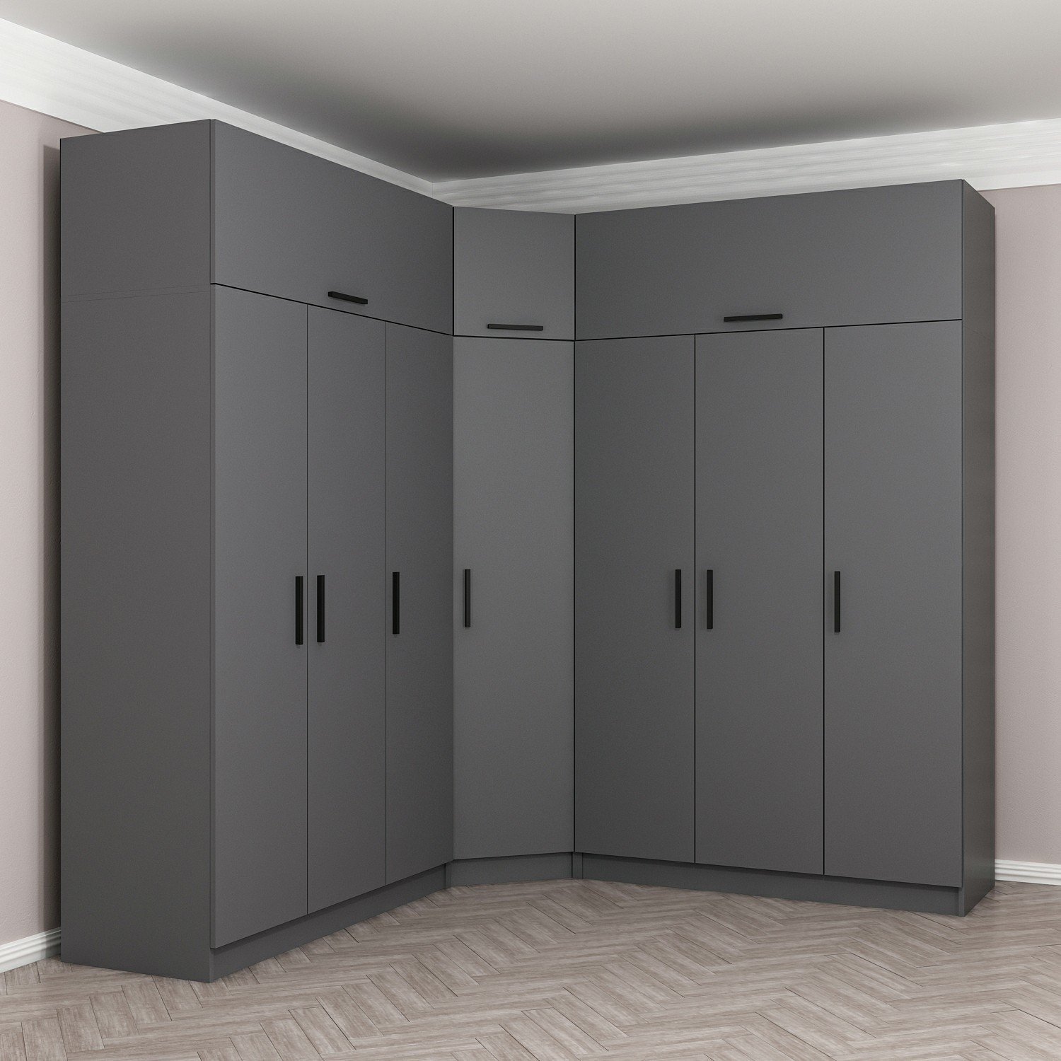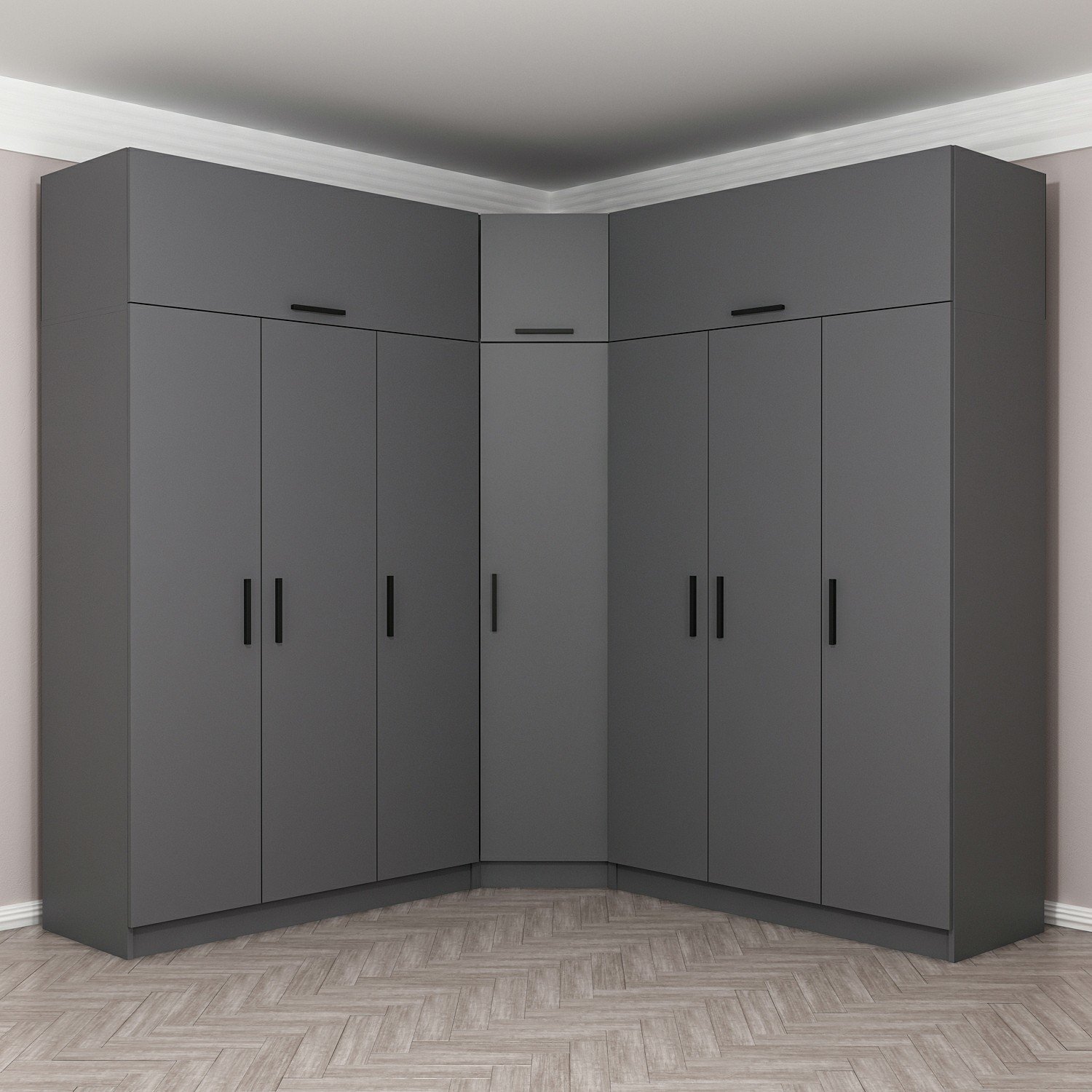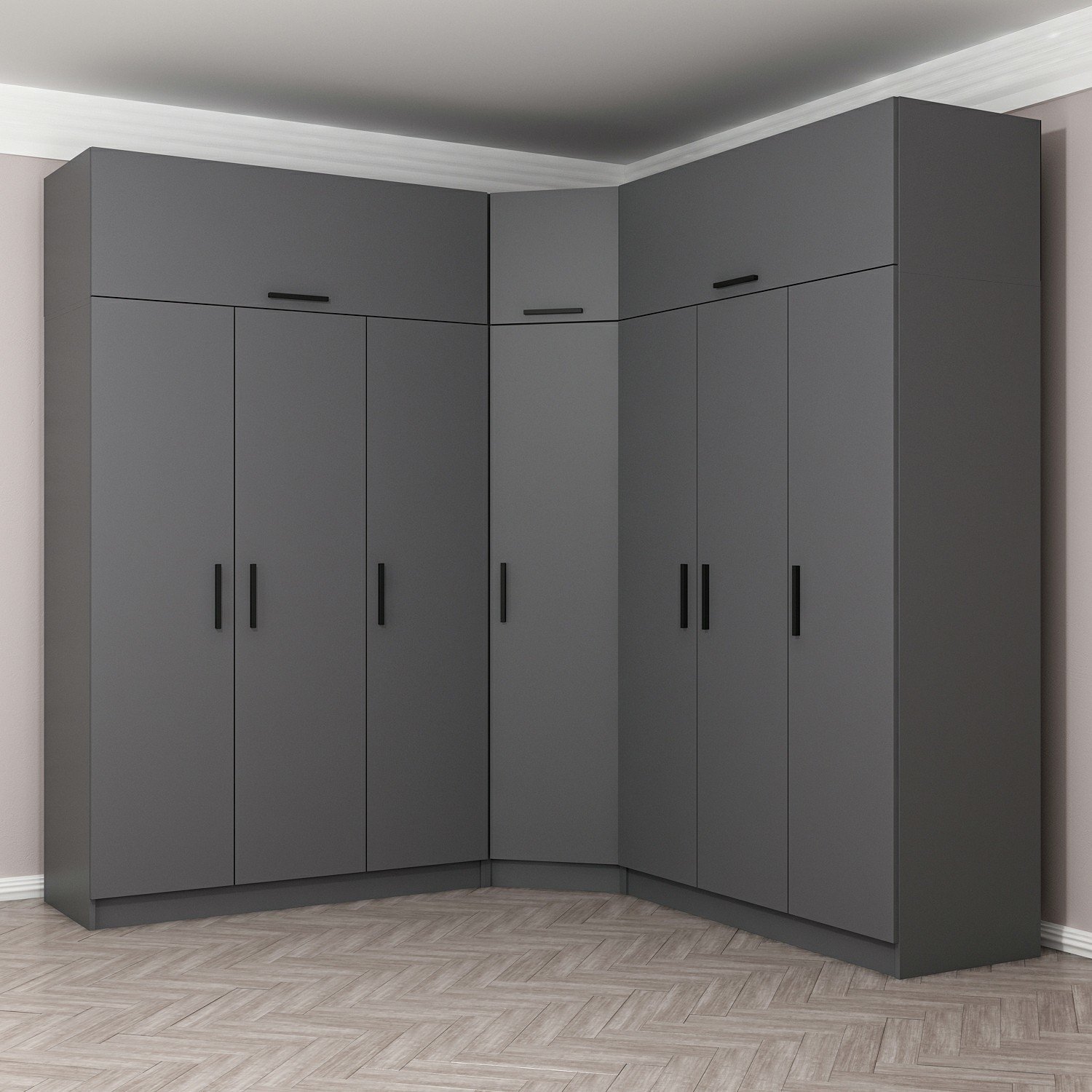 Minar Kale 7 Kapaklı 4 Ç Köşe Dolap + Yüklük Antrasit 255CM