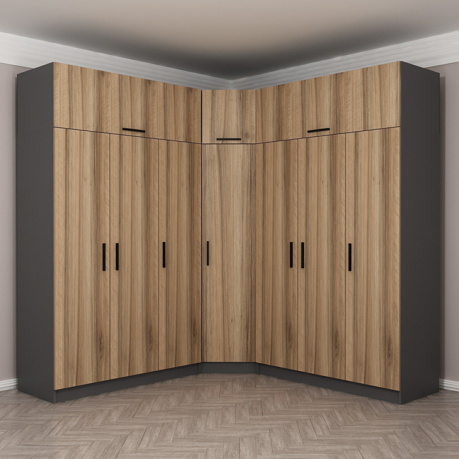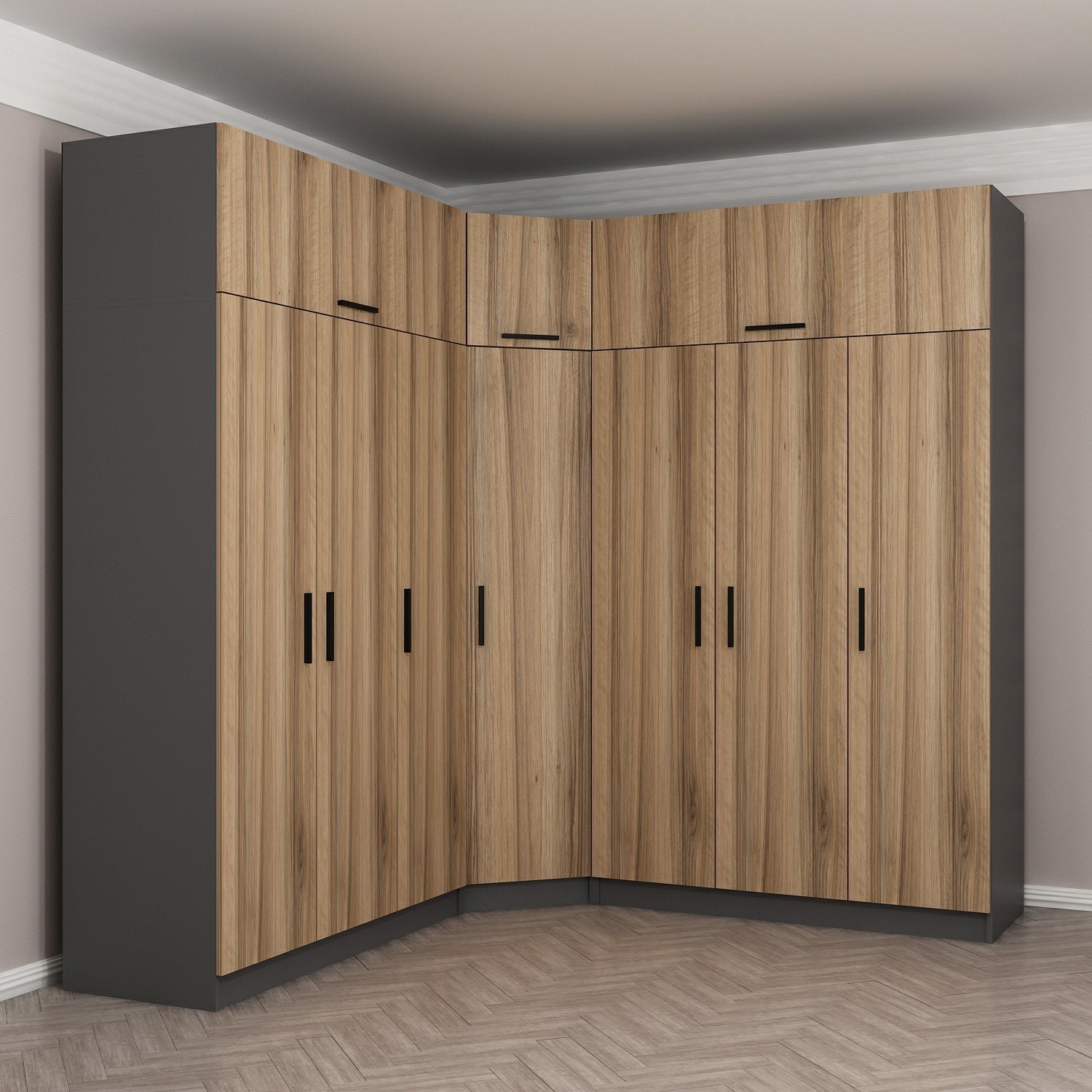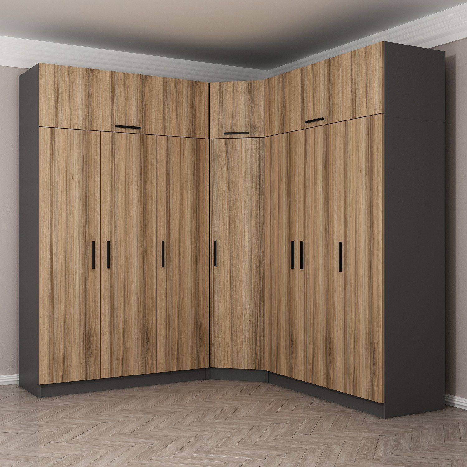 Minar Kale 7 Kapaklı 4 Ç Köşe Dolap + Yüklük Antrasit Dore