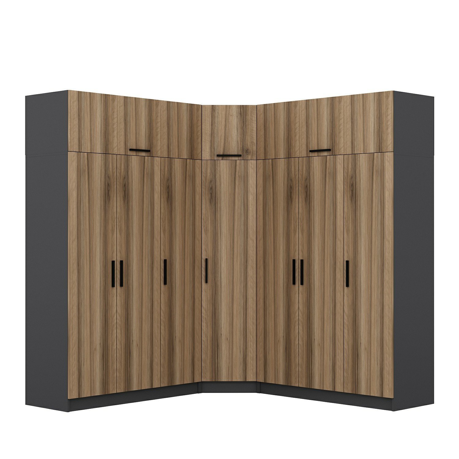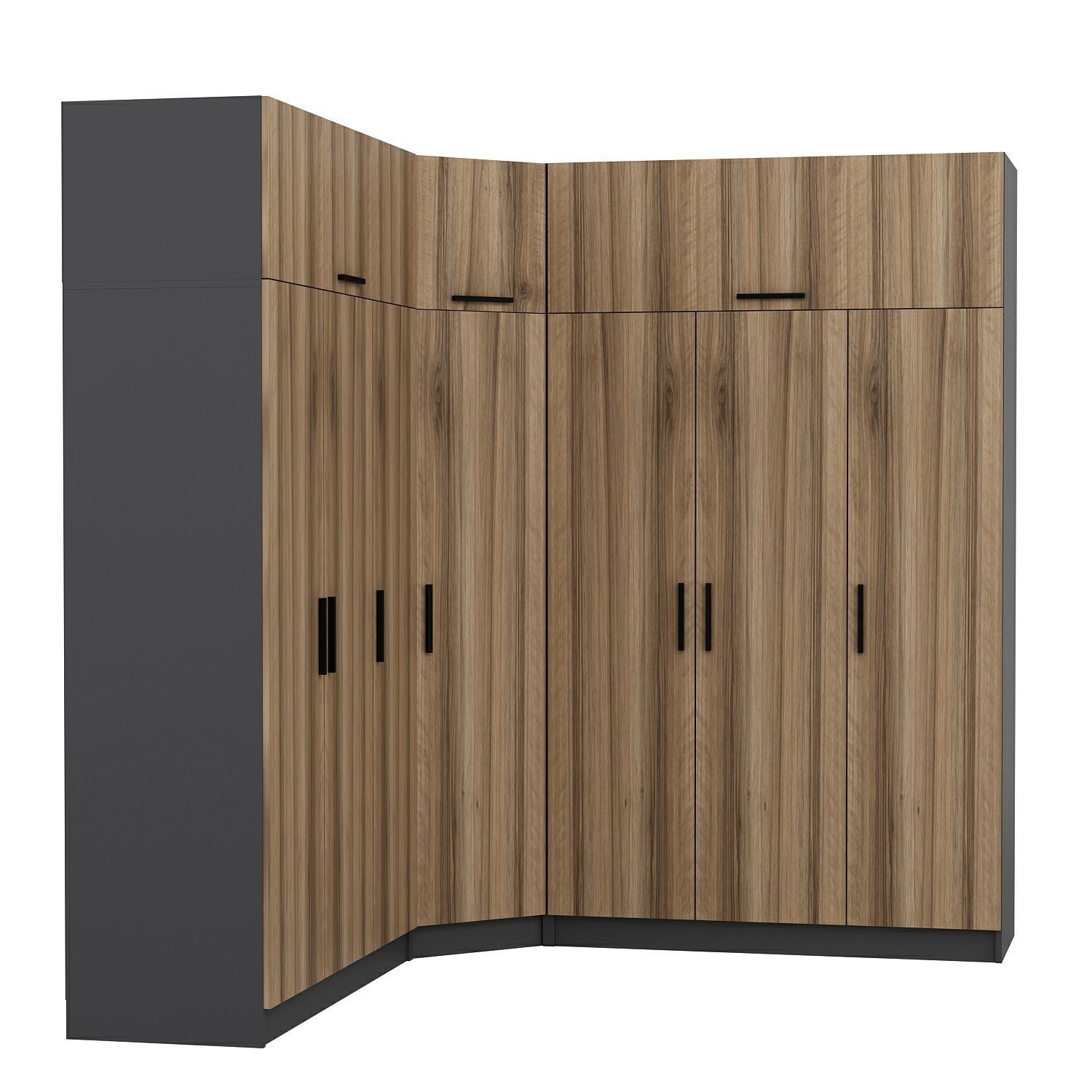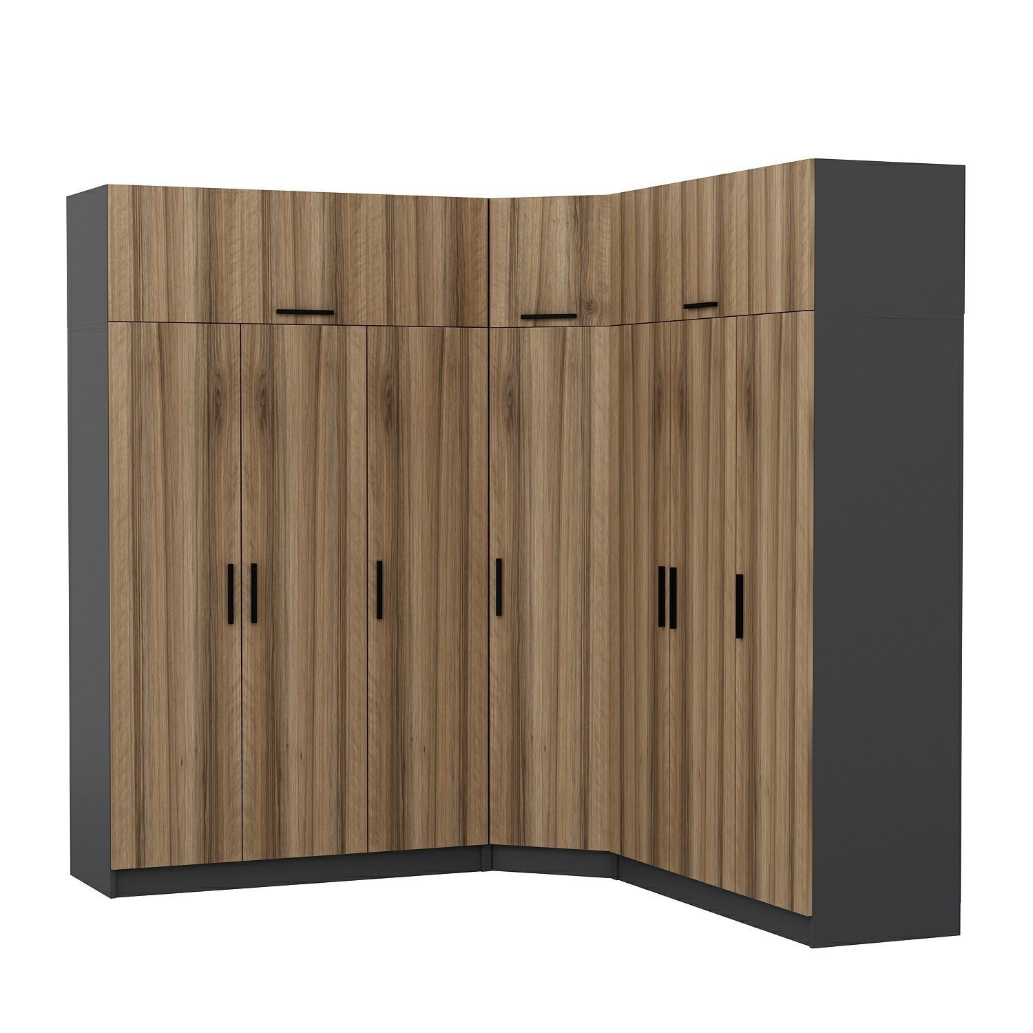 Minar Kale 7 Kapaklı 4 Ç Köşe Dolap + Yüklük Antrasit Dore