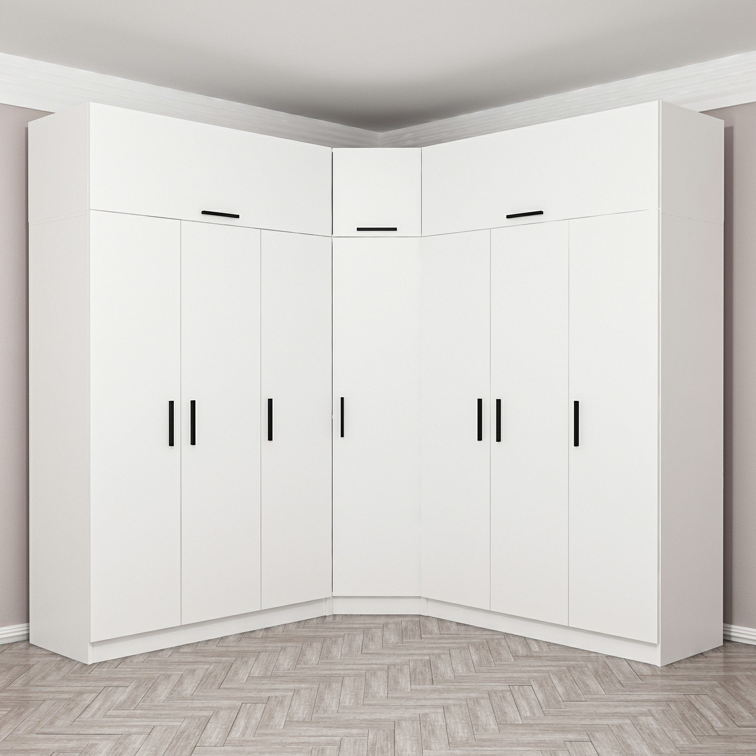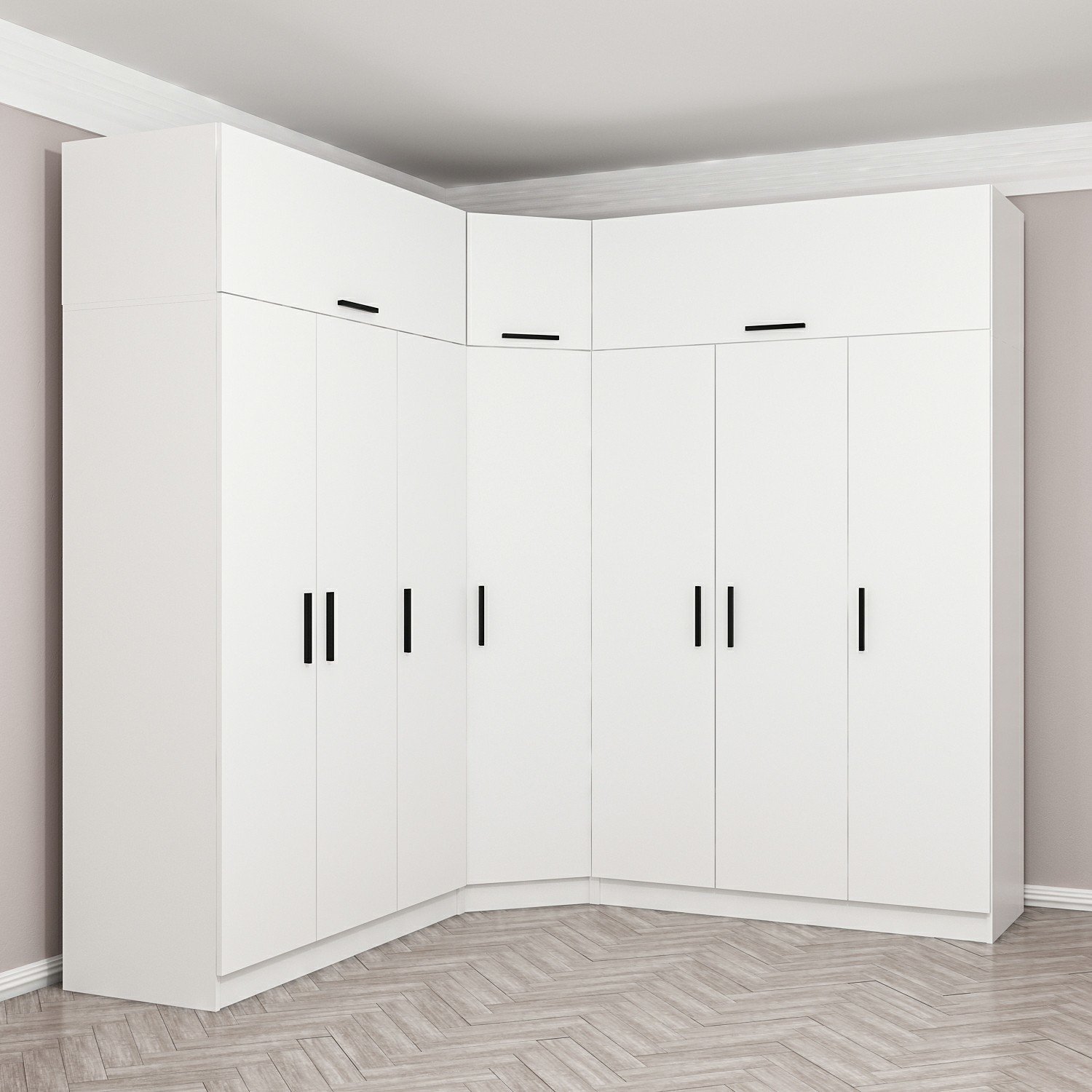 Minar Kale 7 Kapaklı 4 Ç Köşe Dolap + Yüklük Beyaz