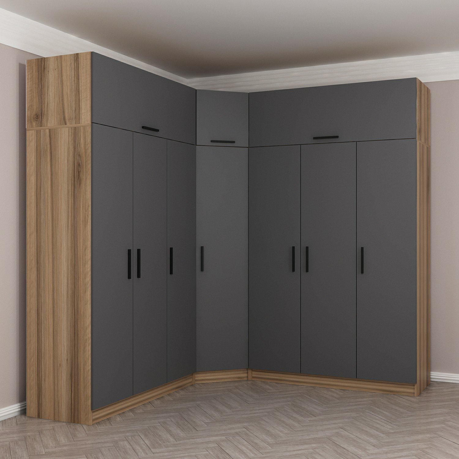 Minar Kale 7 Kapaklı 4 Ç Köşe Dolap + Yüklük Dore Antrasit