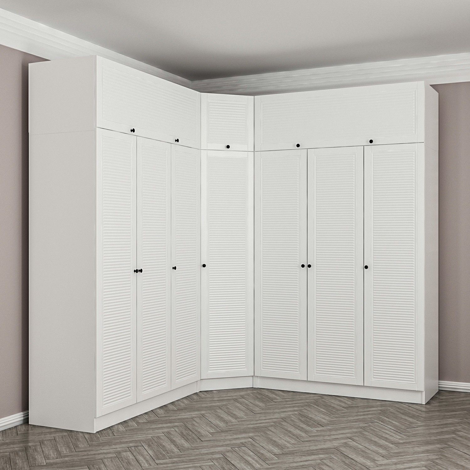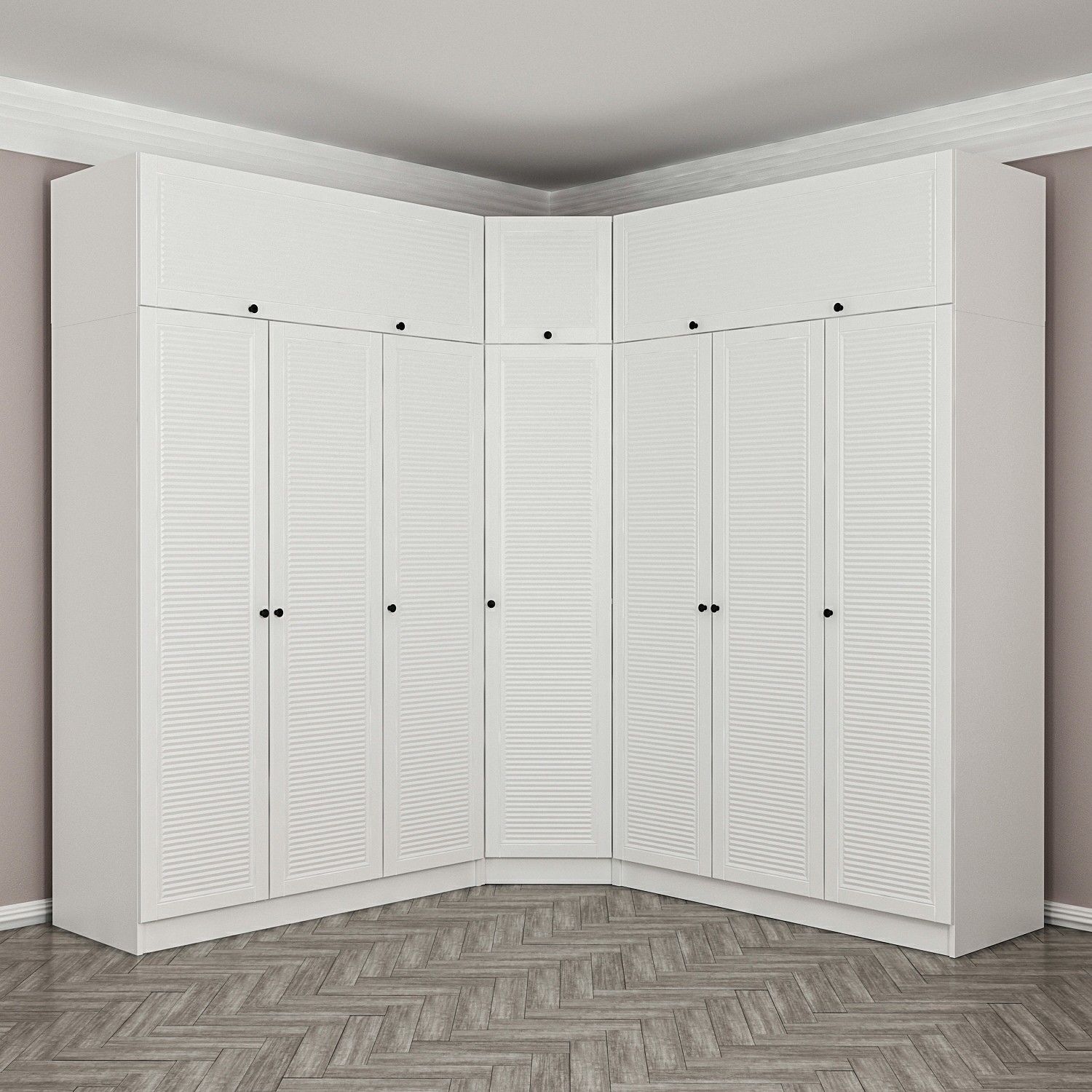 Minar Kale 7 Kapaklı 4 Ç Köşe Dolap + Yüklük Beyaz Mebran Panjur
