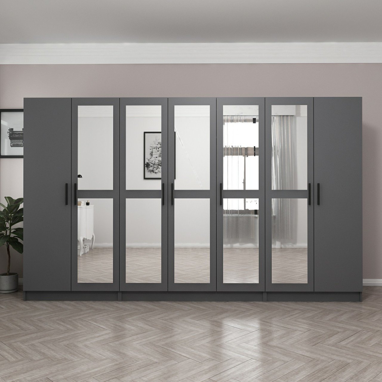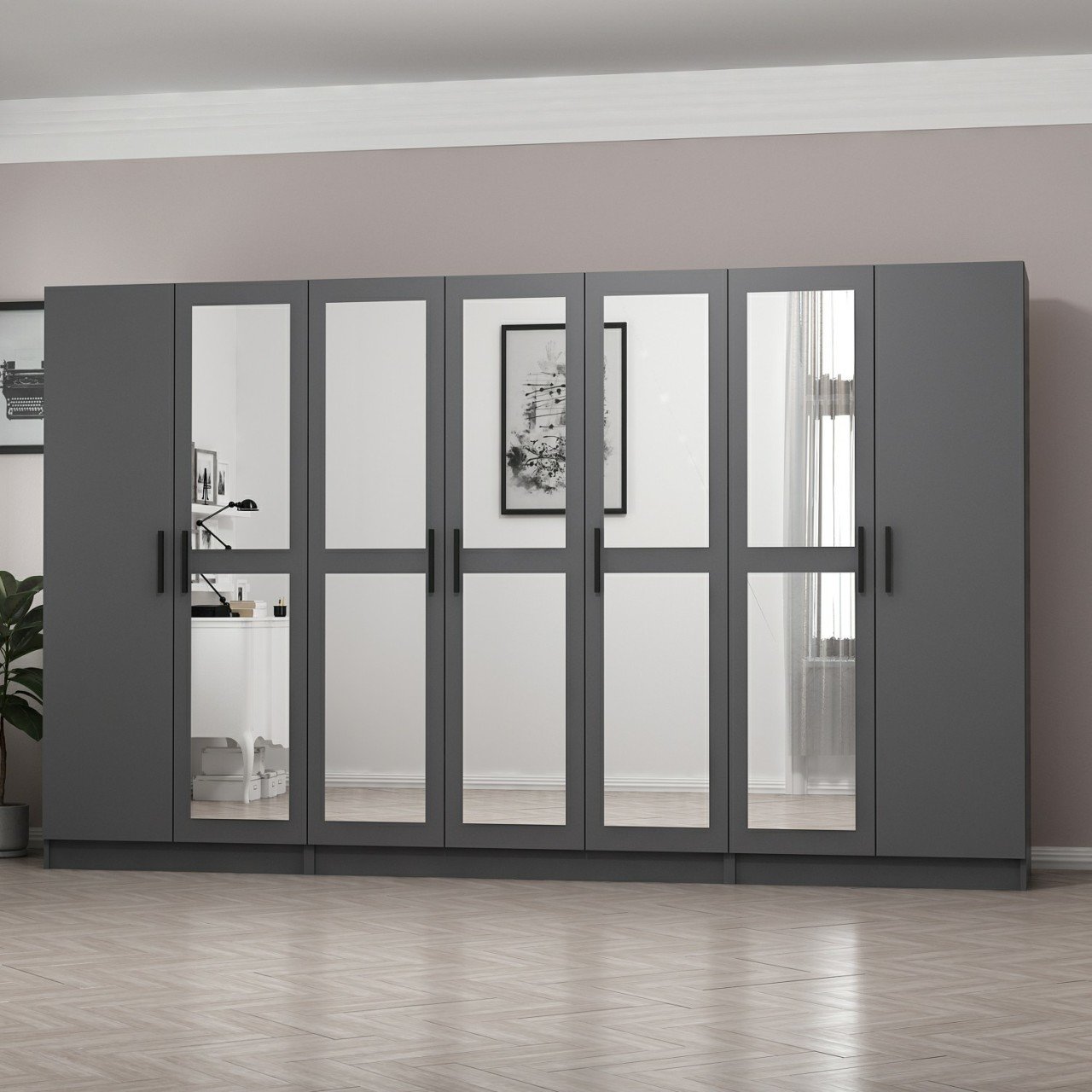 Minar Kale 7 Kapaklı 5 Aynalı 2 Çekmeceli Dolap Antrasit