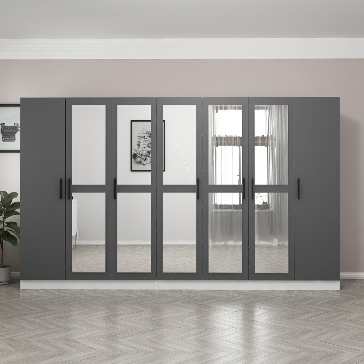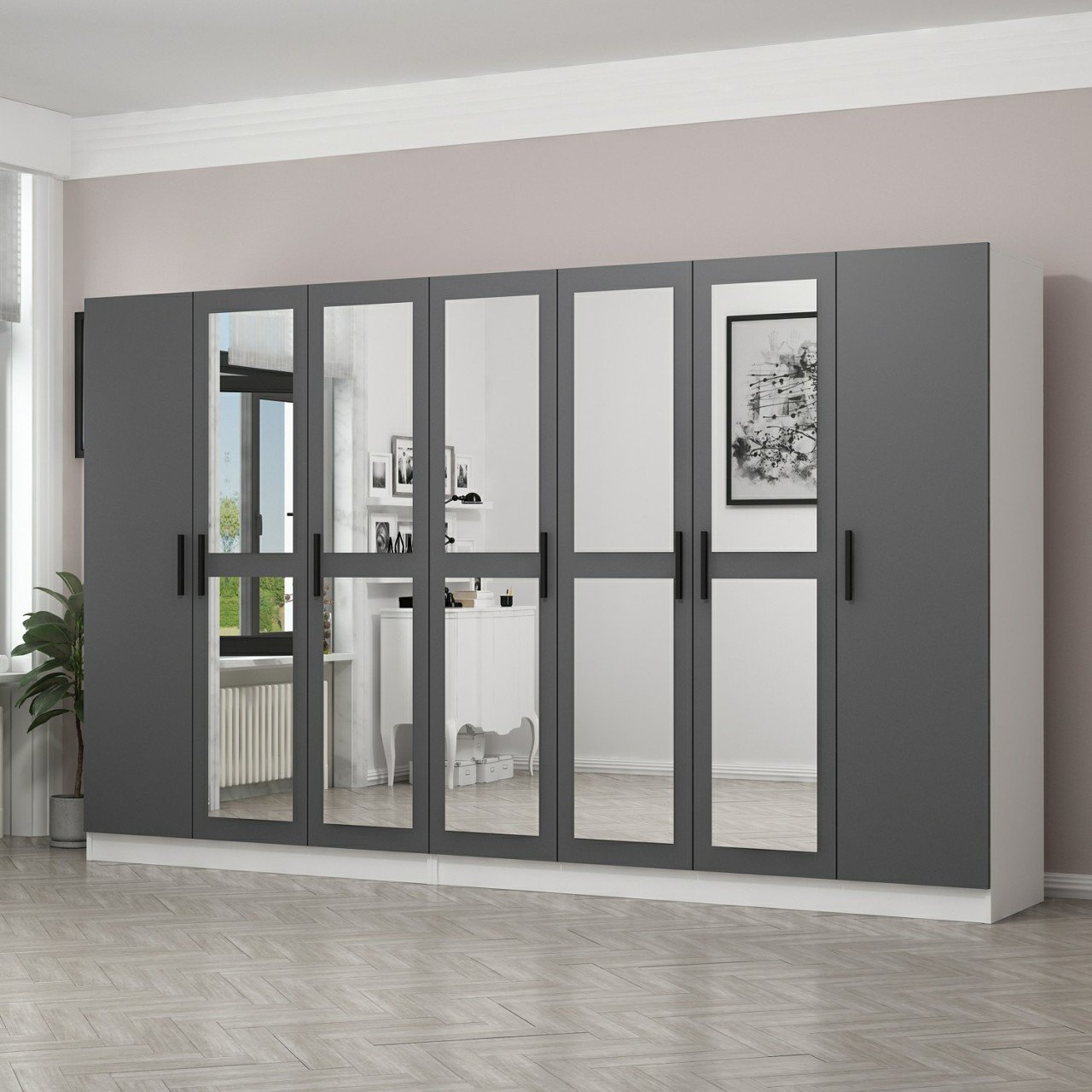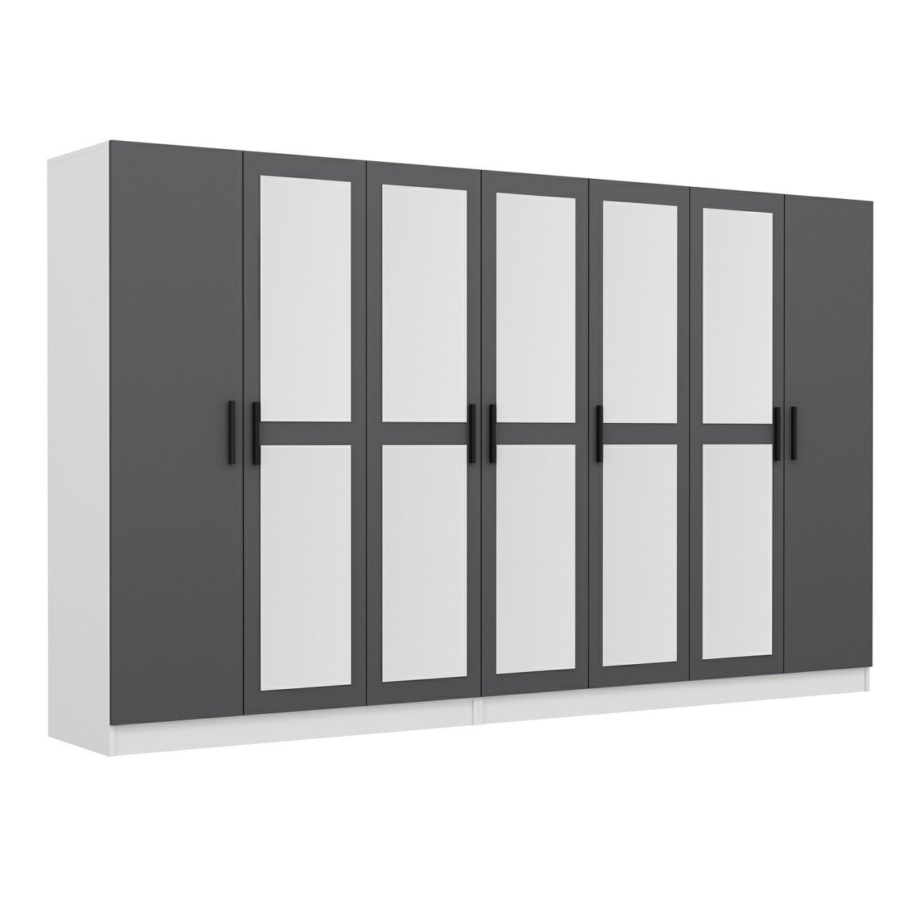 Minar Kale 7 Kapaklı 5 Aynalı 4 Çekmeceli Dolap Beyaz Antrasit