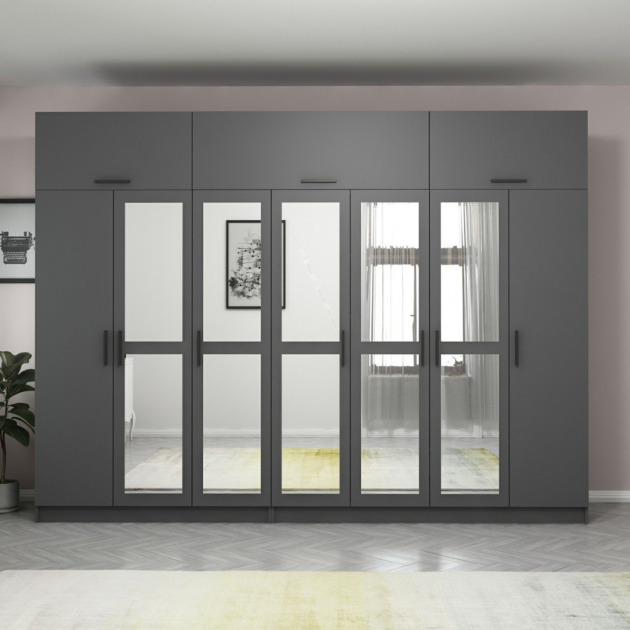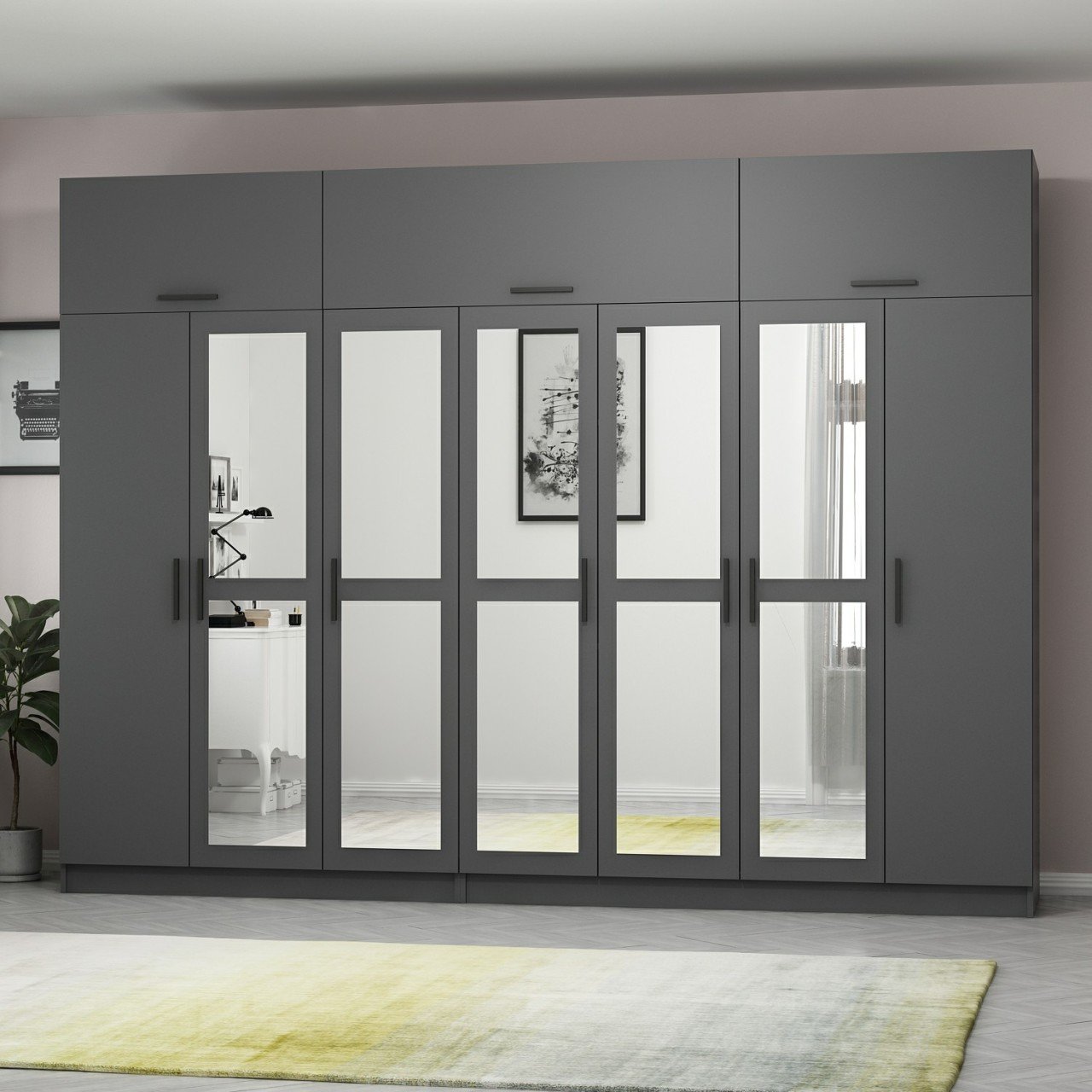 Minar Kale 7 Kapaklı 5 Aynalı 4 Ç Dolap Ve Yüklük Antrasit