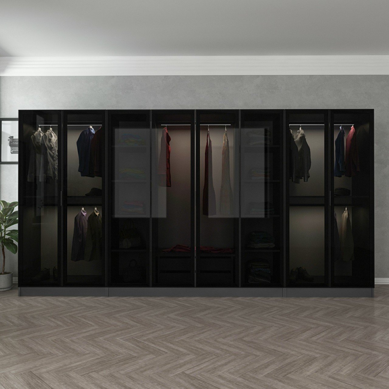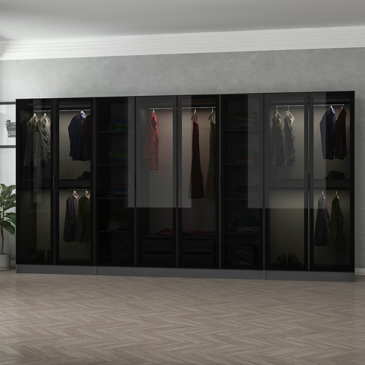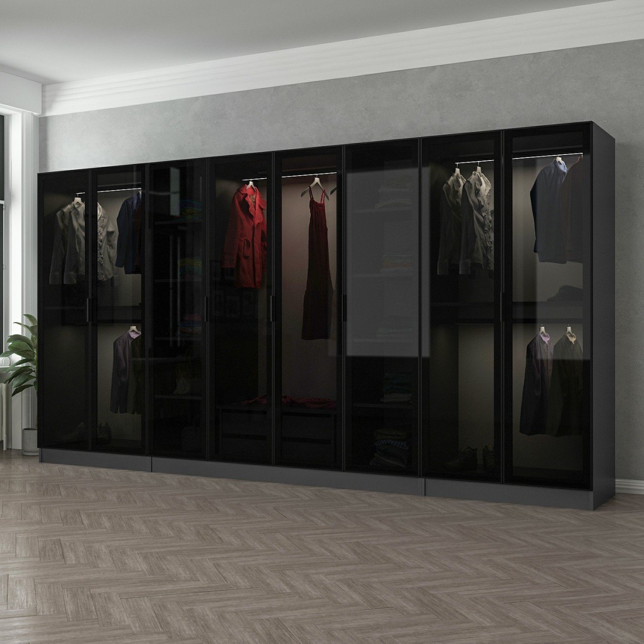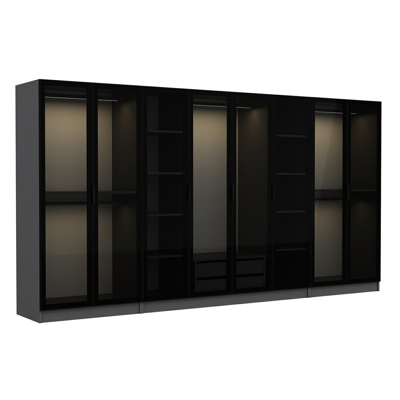 Minar Kale 8 Cam Kapaklı 2 Çekmeceli Dolap - Antrasit/Siyah