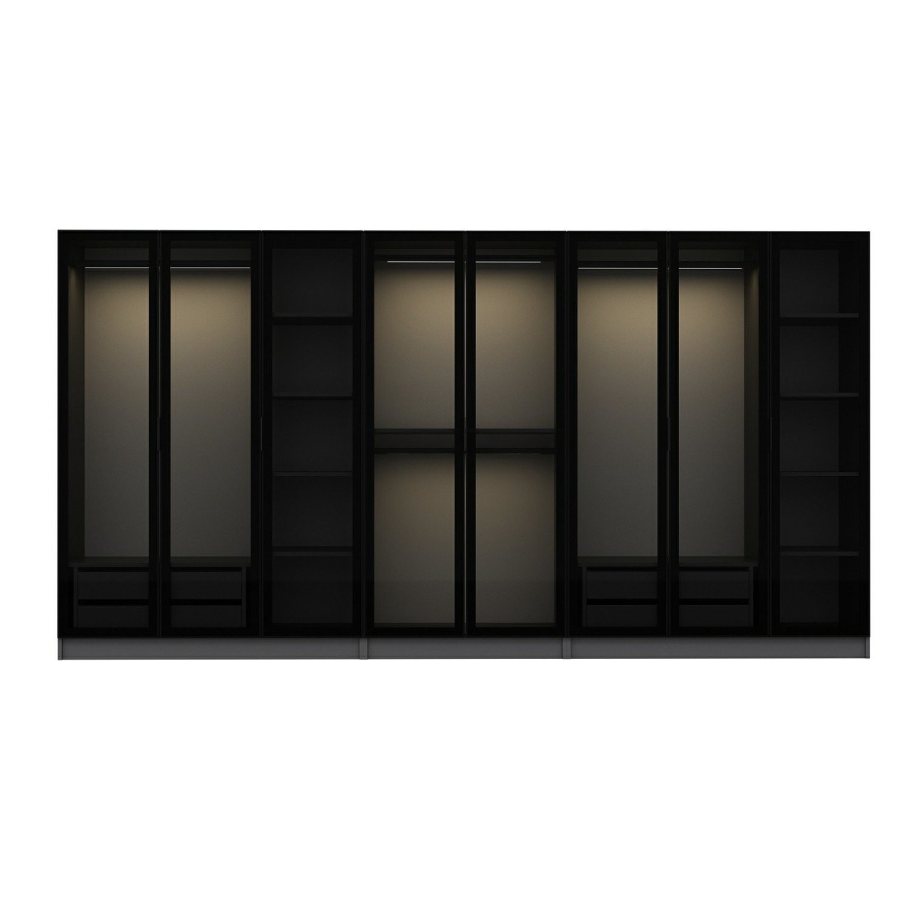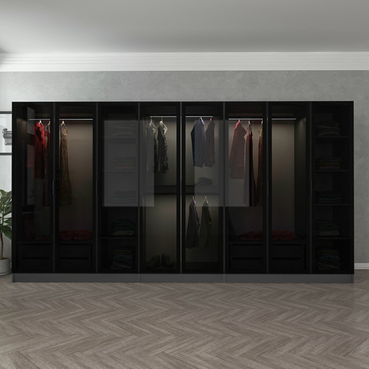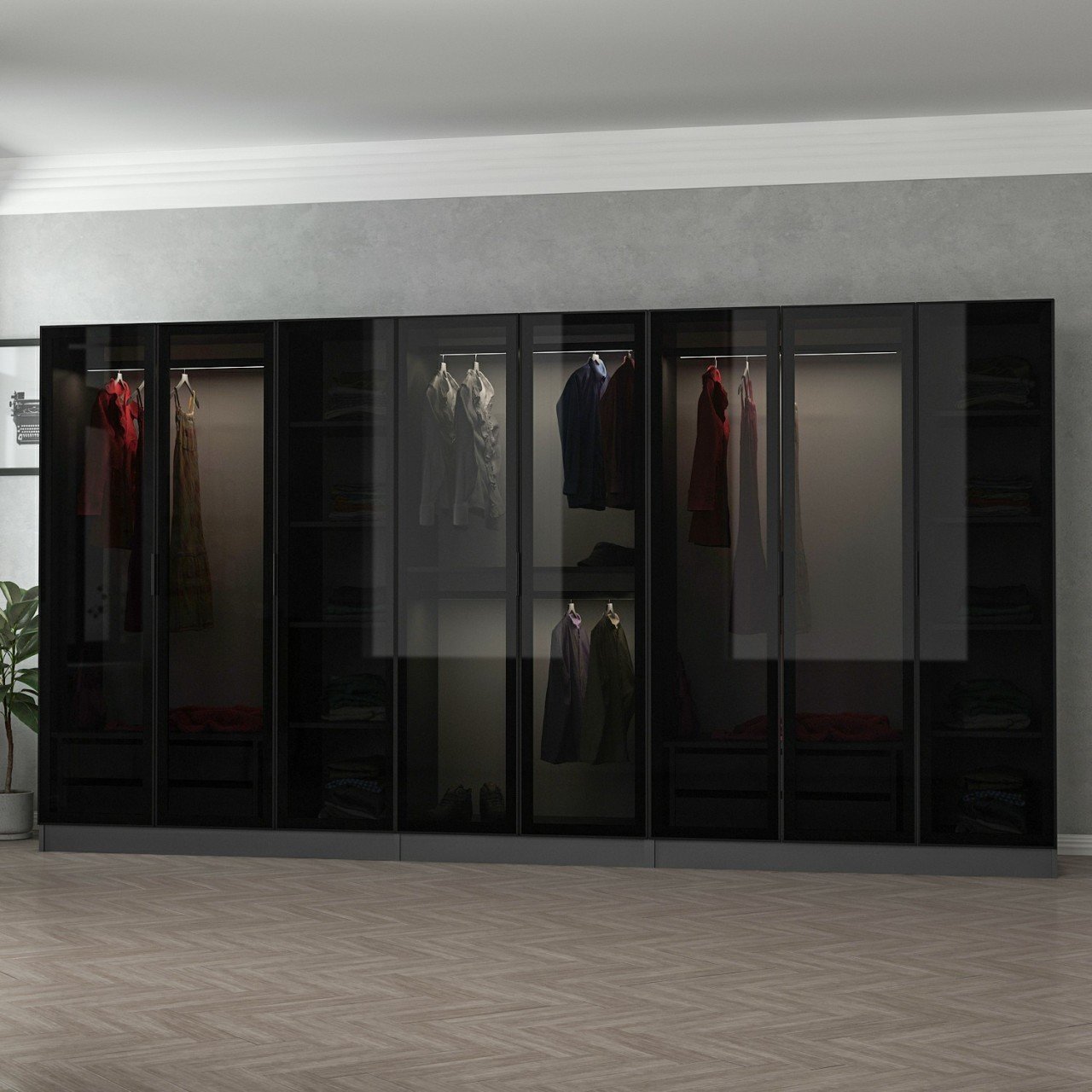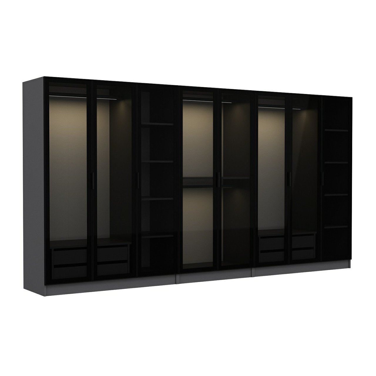 Minar Kale 8 Cam Kapaklı 4 Çekmeceli Dolap - Antrasit/Siyah
