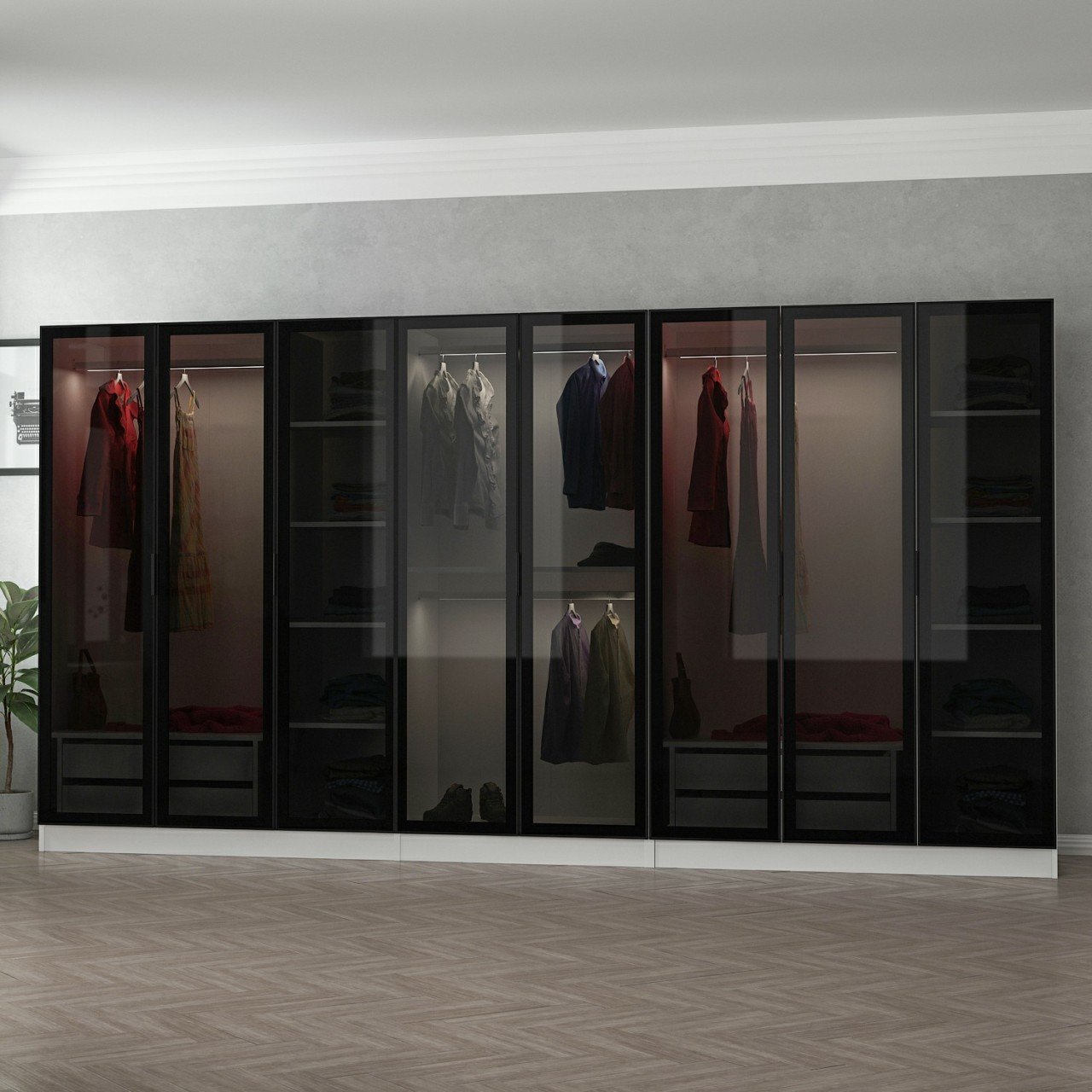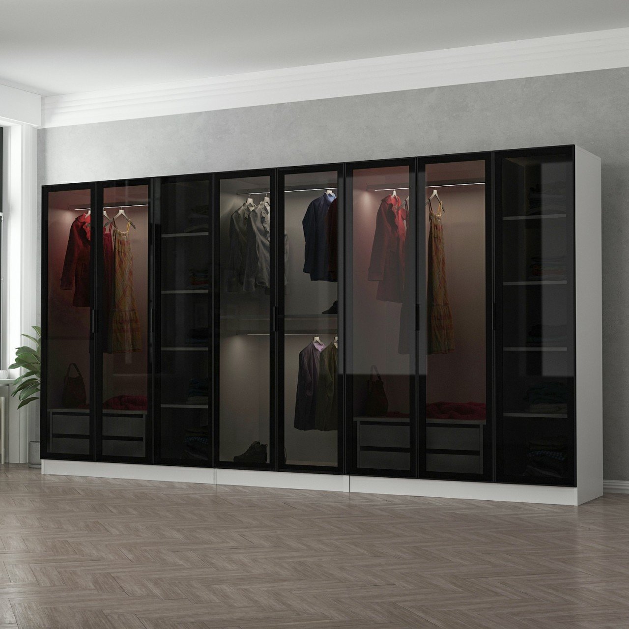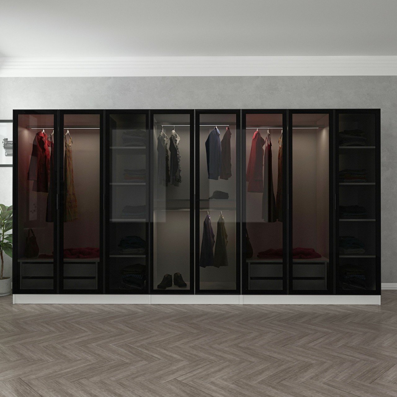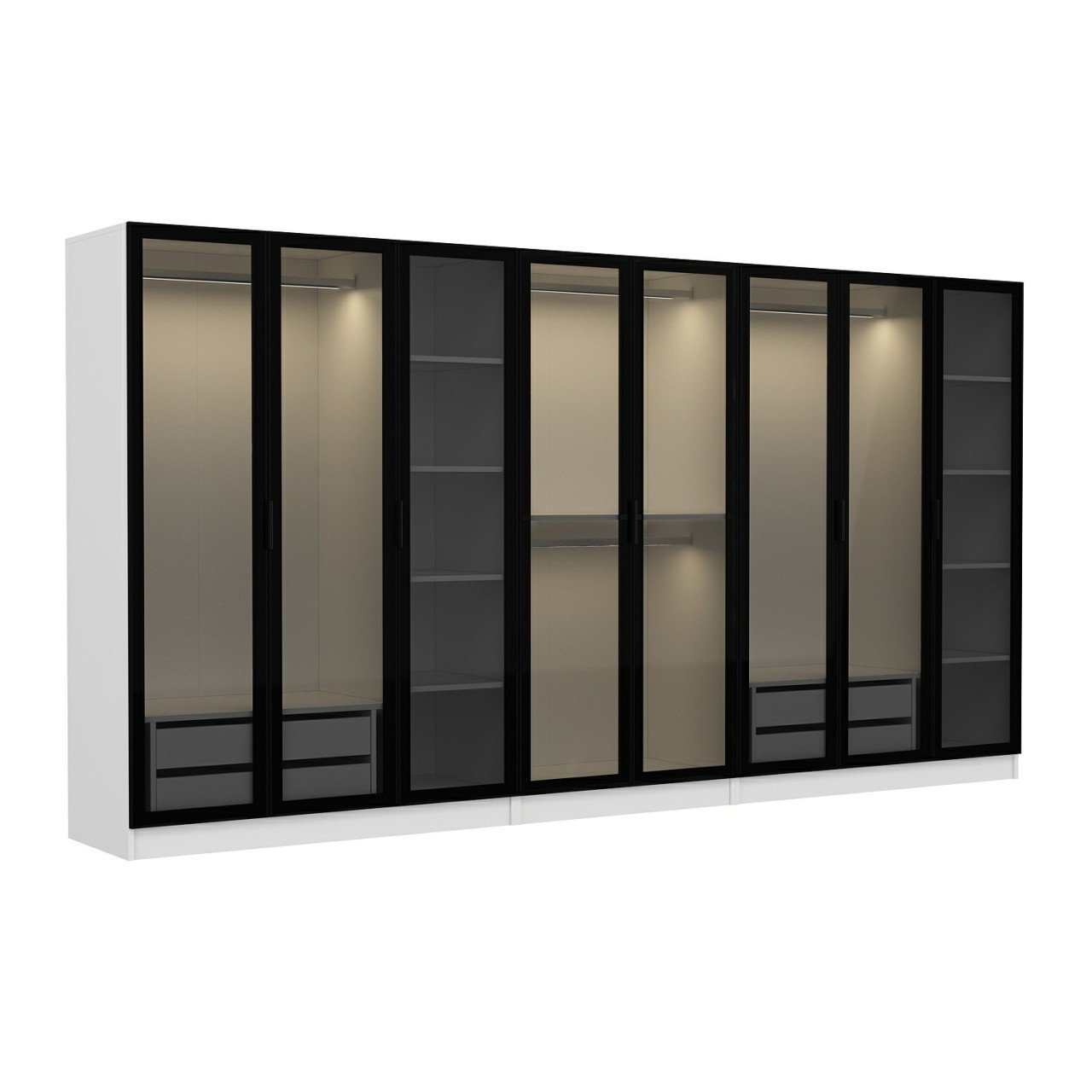 Minar Kale 8 Cam Kapaklı 4 Çekmeceli Dolap - Beyaz/Siyah