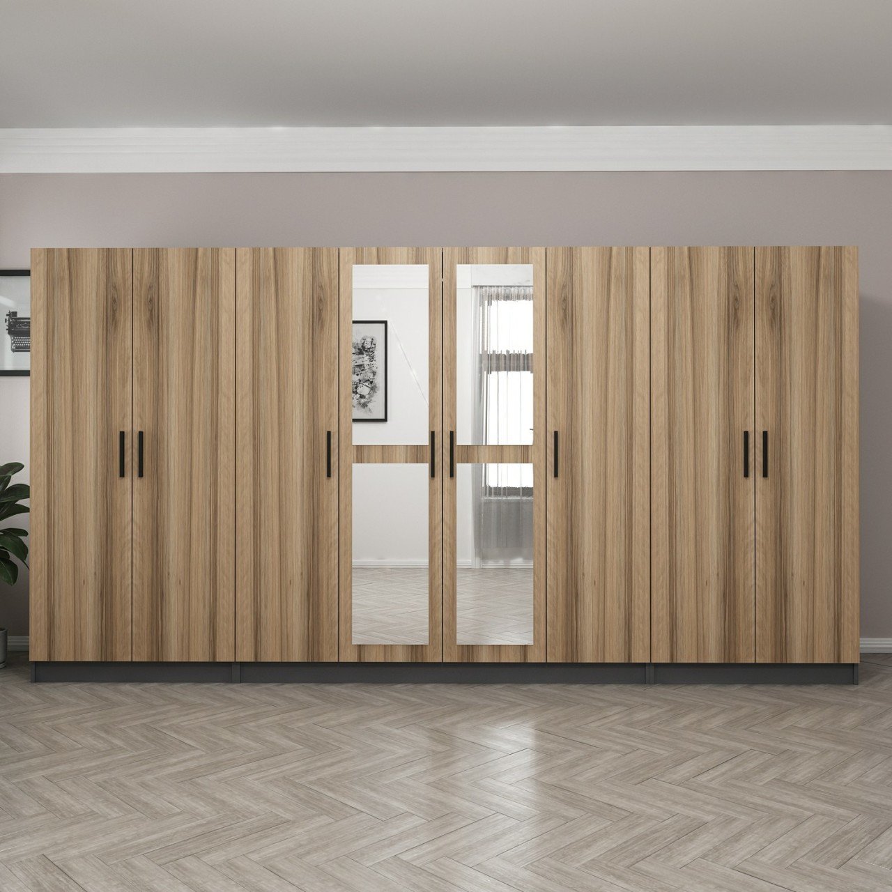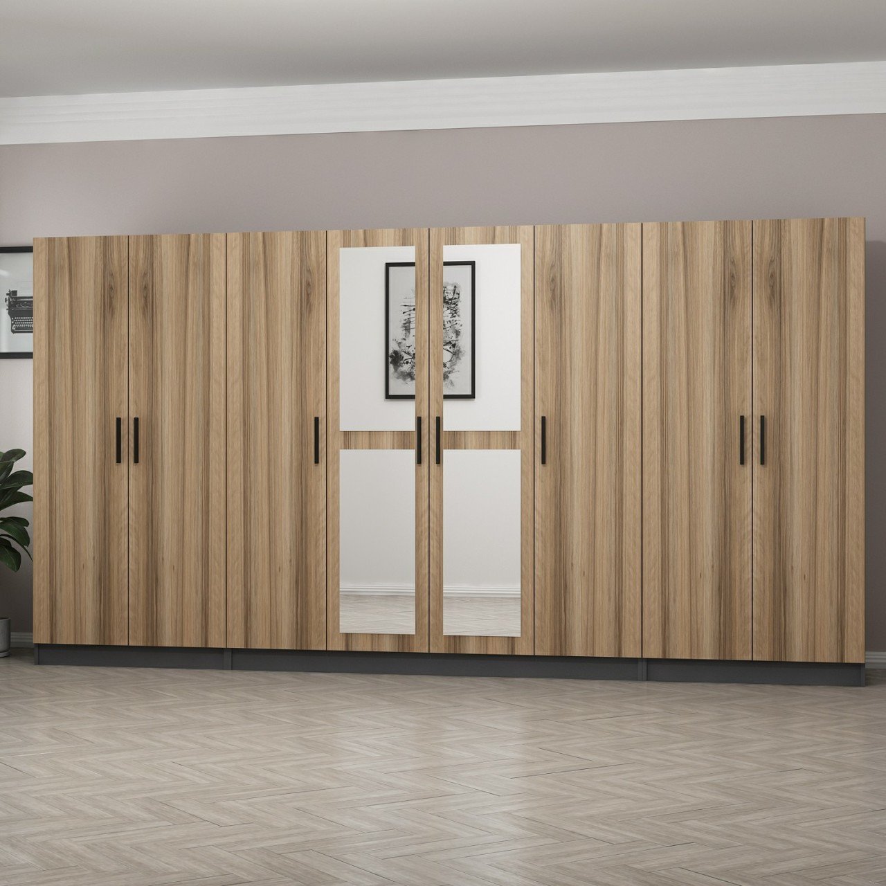 Minar Kale 8 Kapaklı 2 Aynalı 2 Çekmeceli Dolap Antrasit Dore