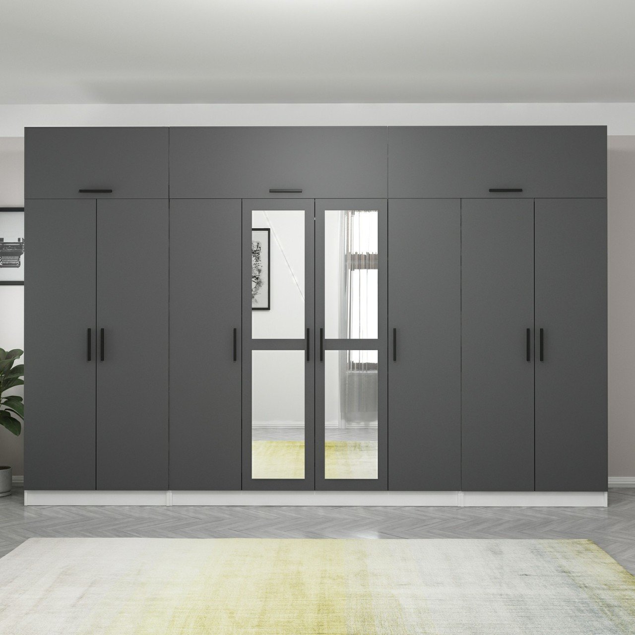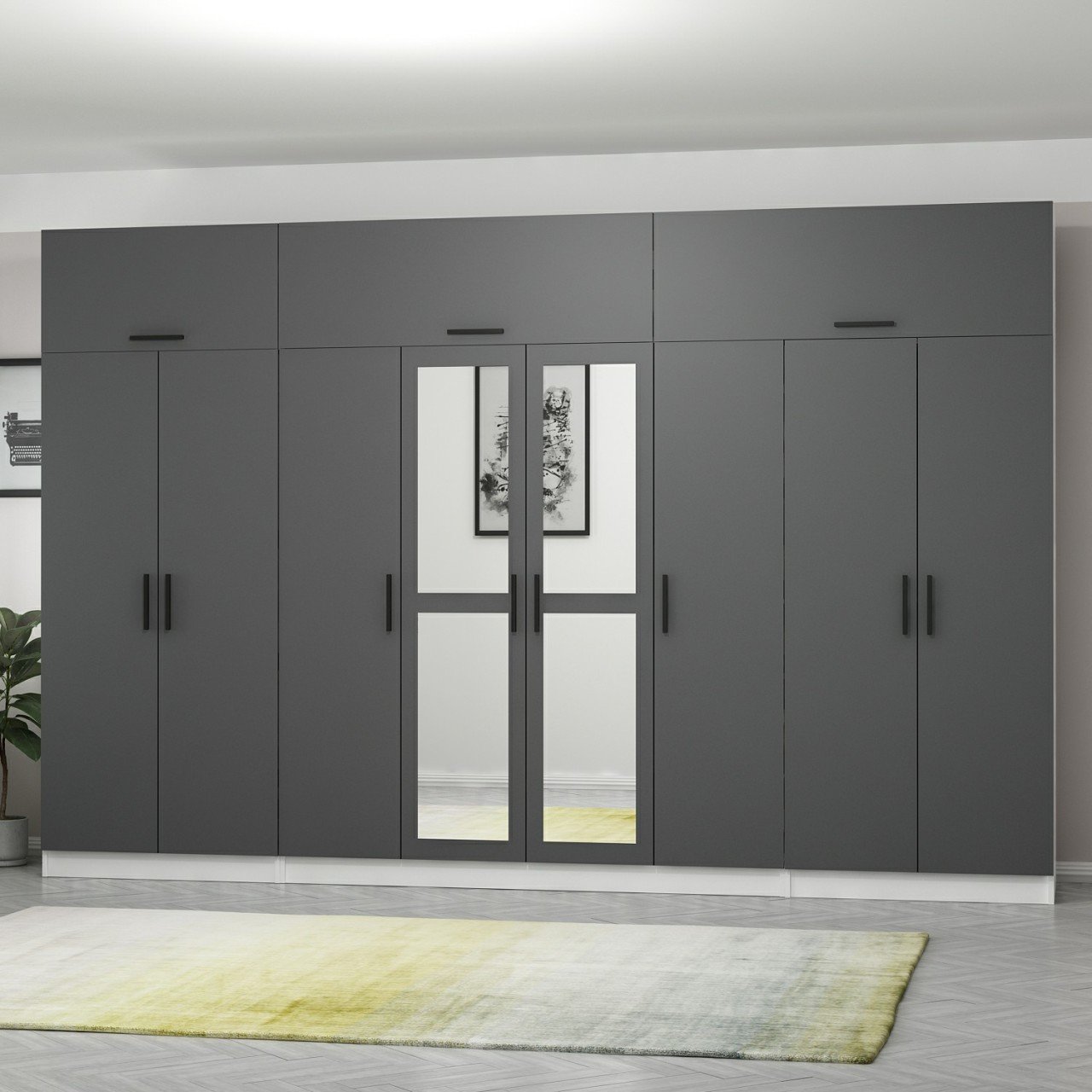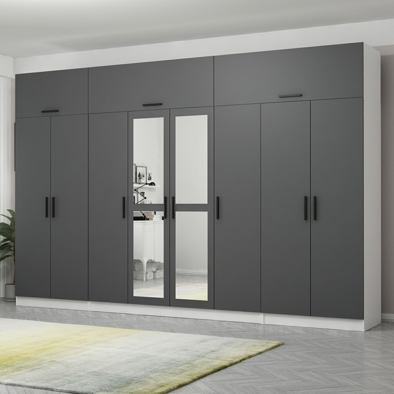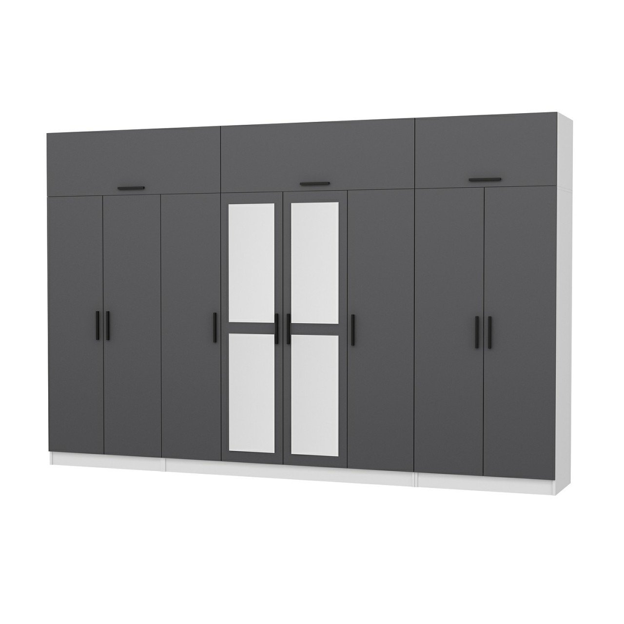 Minar Kale 8 Kapaklı 2 Aynalı 2 Ç Dolap Ve Yüklük Beyaz Antrasit