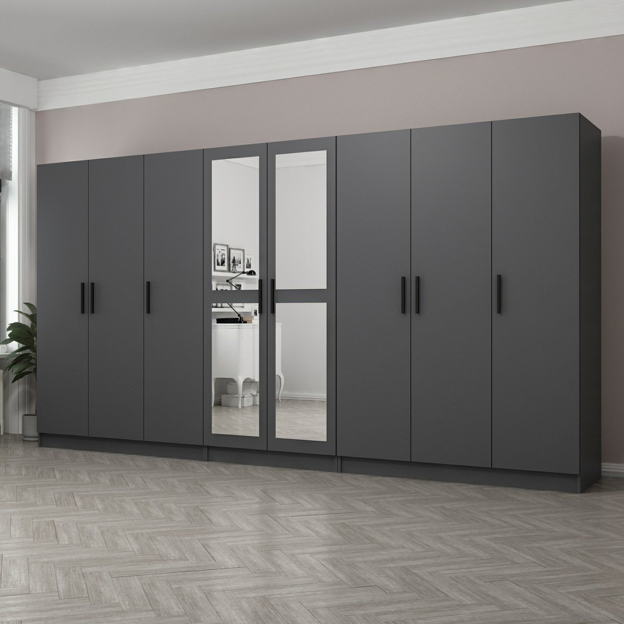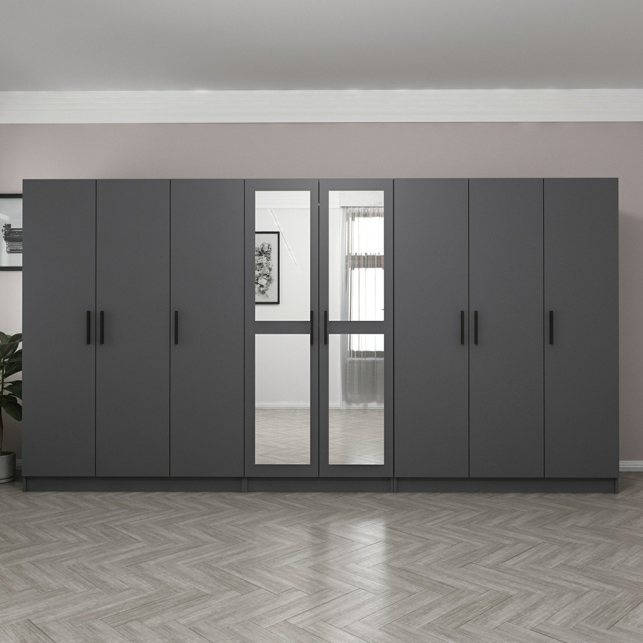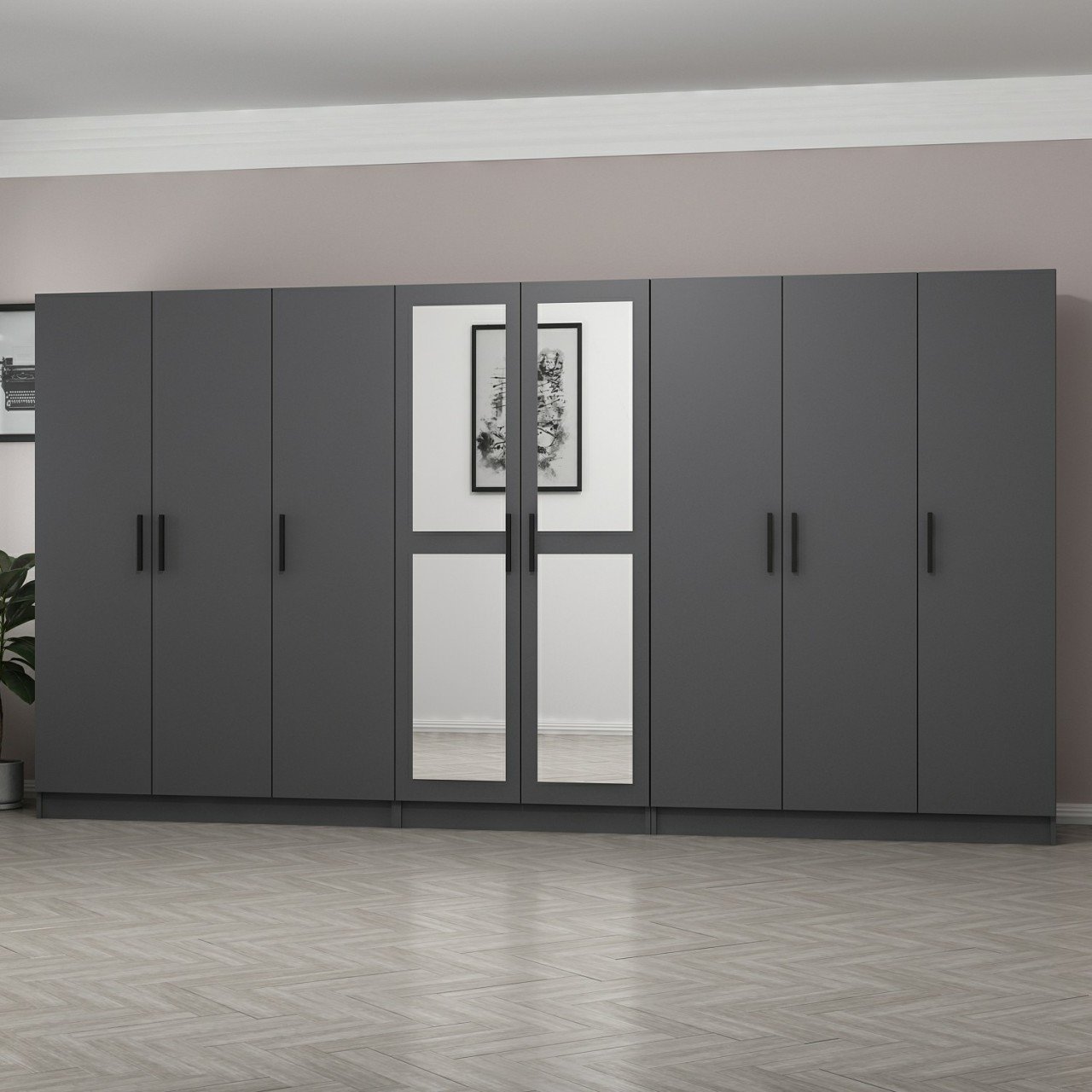 Minar Kale 8 Kapaklı 2 Aynalı 4 Çekmeceli Dolap Antrasit